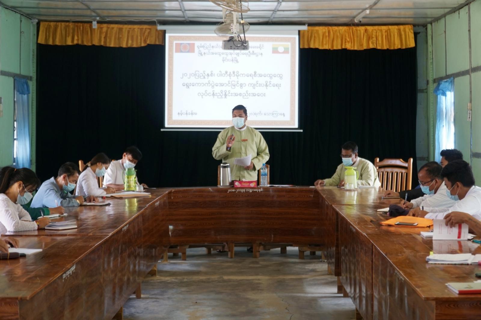အစည်းအဝေးတွင် မြို့နယ်အုပ်ချုပ်ရေးမှူး ဦးစိုးမင်းထက်မှ ပထမအကြိမ် မဲဆန္ဒရှင်စာရင်း ကပ်ထား ကြေငြာပြီးနောက် မြေပြင်ရှိ လူဦးရေစာရင်းနှင့် ကွဲလွဲမှုမရှိစေရန်အတွက် မြို့နယ်အတွင်း၌ တစ်အိမ်တက် တစ်အိမ်ဆင်း ကွင်းဆင်းကောက်ခံခဲ့မှုစာရင်းဇယားများနှင့် ကိုက်ညီ၍ တိုက်ဆိုင်စစ်ဆေးနေမှု အခြေ အနေ များနှင့် ပတ်သက်၍ အဖွင့်အမှာစကားပြောကြားခဲ့ပြီး ဒုတိယအကြိမ် မဲဆန္ဒရှင်ကပ်ထားကြေငြာရာ၌ မဲစာရင်း တိကျမှန်ကန်မှု ရှိစေရန် တာဝန်ရှိသူများအား ညှိနှိုင်းဆွေးနွေးစေခဲ့ကြောင်း သိရသည်။ ဆက်လက် ၍ မြို့နယ် ရွေးကောက်ပွဲကော်မရှင်အဖွဲ့ခွဲရုံးမှ ရွေးကောက်ပွဲအရာရှိ ဒေါ်နန်းဆွယ်ငင်းမှ ဆန္ဒရှင် မဲစာရင်း များအား တိုက်ဆိုင် စစ်ဆေး နေမှုအား ရှင်းလင်းပြောကြားခဲ့ပြီး တက်ရောက်လာကြသူများနှင့် စာရင်း ကိုက်ညီ မှုရှိစေရန် ညှိနှိုင်းခဲ့ကြောင်းသိရသည်။