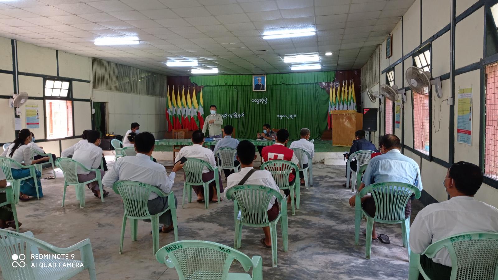 ဆွေးနွေးပွဲတွင် မြို့နယ်အုပ်ချုပ်ရေးမှူး ဦးဌေးအောင်က လက်တလော Covid-19ကြောင့်ဖြစ်ပွားသော အဆုတ်ရောင်ရောဂါကာကွယ် ထိန်းချုပ်ခြင်း၊ကျန်းမာရေးစစ်ဆေးခြင်းနှင့် ရောဂါလက္ခဏာပ ပေါ်ပေါက် လာပါက အချိန်မီကုသနိုင်စေရန်၊ ရောဂါဆက်လက်ပြန့်ပွားမှု မရှိစေရေးတို့အတွက် ဝိုင်းဝန်း ဆောင်ရွက်ကြရမည် ဖြစ်ကြောင်းပြောကြားခဲ့ပြီး တက်ရောက်လာသူများက သိရှိလိုသည်များကို မေးမြန်းရာ မြို့နယ် အုပ်ချုပ်ရေးမှူး ဦးဌေးအောင်က ပြန်လည်ရှင်းလင်းဆွေးနွေးခဲ့ကြောင်း သိရသည်။