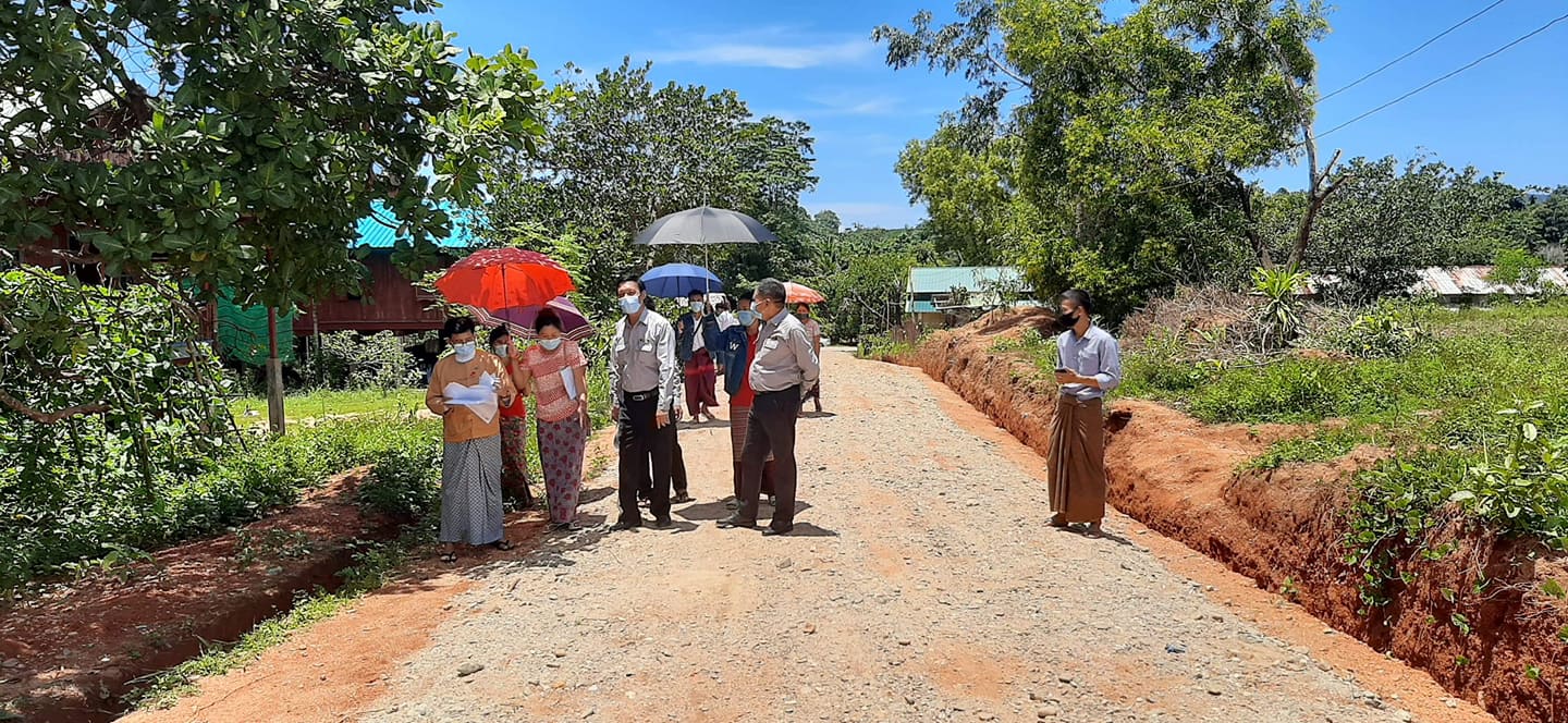 ထိုနောက် တိုင်းဒေကြီးကျေးလက်ဒေသဖွံ့ဖြိုးတိုးတက်ရေးဦးစီးဌာနမှ တိုင်းဦးစီးမှုး ဦးတင်နုနှင့် တာဝန်ရှိသူများက စီမံကိန်း လုပ်ငန်းဆောင်ရွက်နေမှုများကို ရှင်းလင်းတင်ပြ ကြသည်။ အဆိုပါ Cash For Work စီမံကိန်းလုပ်ငန်းဖြင့် အကောင် အထည်ဖော် ဆောင်ရွက်နေသည့် ကျေးရွာ တစ်ရွာလျှင် ကျပ်သိန်းတစ်ရာဖြင့် မြို့နယ်ကျေးလက်ဒေသ ဖွံ့ဖြိုးတိုးတက်ရေး ဦးစီးဌာနမှ နည်းပညာပံ့ပိုး၍ အနီးကပ်ကြီးကြပ်ကာ ကျေးရွာသူ ကျေးရွာသားများ ကိုယ်တိုင်အကောင်အထည် ဖော်ဆောင် ရွက်ခြင်းဖြစ်ကြောင်း မြို့နယ် ကျေးလက်ဒေသ ဖွံ့ဖြိုးတိုးတက်ရေး ဦးစီးဌာန မြို့နယ်ဦးစီးမှူး ဦးသန်းအောင်ထွန်း ထံမှ သိရသည်။