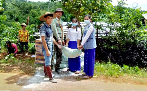 ထိုသို့ ထောက်ပံ့ပေးအပ်ရာတွင် လူမှုဝန်ထမ်း၊ ကယ်ဆယ်ရေးနှင့် ပြန်လည်နေရာ ချထားရေးဝန်ကြီးဌာန၊ နမ္မတူမြို့နယ် ဘေးအန္တရာယ်ဆိုင်ရာစီမံခန့်ခွဲမှုဦးစီးဌာနရုံးမှ တာဝန်ခံ ဒေါ်မြတ်သူနှင်းနှင့် တာဝန်ရှိသူများက လီဆူး (IDP)စခန်း၊ ကချင် (IDP)စခန်းနှင့် ကြူဆော့ (IDP)စခန်းတို့ရှိ တိုက်ပွဲရှောင်ပြည်သူအိမ်ထောင်စု (၁၂၂)စု၊ တိုက်ပွဲရှောင်ပြည်သူ (၅၅၅)ဦးတို့ အတွက် ကိုဗစ်-၁၉ရောဂါ ကာကွယ်ထိန်းချုပ်ရေး အထောက်အကူပြု ထုံးအိတ် (၃၀)အိတ်နှင့် လက်ဆေးဆပ်ပြာခဲ (၄)ဖြတ်ပါ (၅၅၅)ခဲအား တိုက်ပွဲရှောင်ပြည်သူများ လက်ဝယ်သို့ အရောက် ထောက်ပံ့ပေးအပ်ခဲ့ကြောင်း သိရသည်။