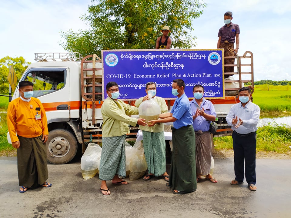 ဧရာဝတီတိုင်းဒေသကြီး၊ ပုသိမ်ခရိုင်၊ ရေကြည်မြို့နယ်အတွင်းရှိ ငါးမွေးတောင်သူများကို မြို့နယ် ငါးလုပ်ငန်းဦးစီးဌာနမှ ၂၀၂၀-၂၀၂၁ ခုနှစ်အတွက် COVID-19 Economic Relief Plan (CERP) အရ ငါးမွေးမြူရေးလုပ်ငန်း အဆင်ပြေစေရန်အတွက် နိုင်ငံတော်အစိုးရမှ ငါးမွေးမြူရေးလုပ်ငန်းများ ပြန်လည်ဦးမော့ လာစေရေးအတွက် ငါးမွေးတောင်သူများထံသို့ ငါးသားပေါက် ထောက်ပံ့ပေးအပ်ခြင်းကို ယနေ့နံနက် ၁၀ နာရီခွဲအချိန်က မျှော့တူငါးမွေးကန်၊ ကျောက်ခဲချောင်းကျေးရွာနှင့် ကုန်းပြင်ကျေးရွာရှိ ငါးမွေးတောင်သူများထံသို့ သွားရောက်ကာ ငါးသားပေါက်များ အခမဲ့ ထောက်ပံ့ပေးအပ်ခဲ့သည်။