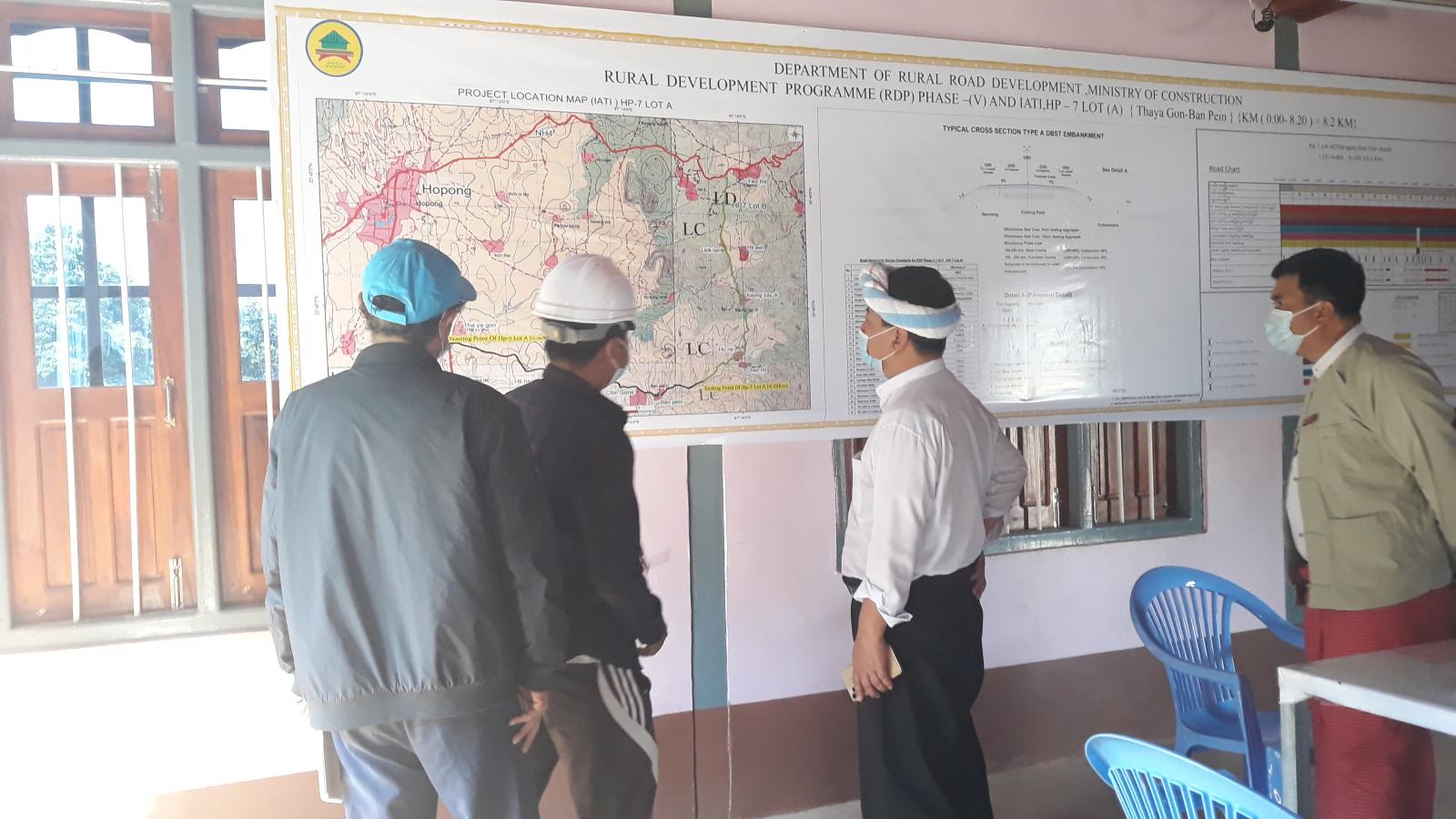 ထိုသို့ ကွင်းဆင်းစစ်ဆေးရာတွင် ပအိုဝ်းကိုယ်ပိုင်အုပ်ချုပ်ခွင့်ရဒေသဦးစီးအဖွဲ့ ဥက္ကဋ္ဌ ဦးခွန်စံလွင်သည် ပြည်နယ်လွှတ်တော် ကိုယ်စားလှယ် ဦးခွန်မောင်ဖြူ၊ မြို့နယ်အုပ်ချုပ်ရေးမှူး ဦးနန်းတင့်၊ ကျေးလက်လမ်းဖွံ့ဖြိုးရေးဦးစီးဌာနမှ ဦးစီးအရာရှိ ဦးတင်ဝင်းထွန်း နှင့် တာဝန်ရှိ သူများလိုက်ပါပြီး Modern World ဆောက်လုပ်ရေးကုမ္ပဏီမှ တာဝန်ယူဆောင်ရွက်မည့် ဘန်ဗိန်း-ရွာသစ်လမ်း လမ်းအရှည် (၇.၈၅၇ကီလိုမီတာx ၄.၅မီတာ)ရှိ ကတ္တရာလမ်း (၄/၇)မိုင်နှင့် မန်းပြည် တံခွန်ဆောက်လုပ်ရေးကုမ္ပဏီမှ တာဝန်ယူဆောင်ရွက်မည့် သာယာကုန်း-ဘန်ဗိန်းလမ်း လမ်း အရှည် (၈.၂ကီလိုမီတာx၄.၅မီတာ)ရှိ ကတ္တရာလမ်း (၅/၀)မိုင်တို့ကို ကွင်းဆင်းကြည့်ရှုစစ်ဆေး ခဲ့ကြောင်းနှင့် အဆိုပါလမ်းကို ပြည်ထောင်စုသမ္မတဂျာမနီနိုင်ငံ (KFW Bank) မှ လှူဒါန်းခဲ့ပြီး ၂၀၂၀ ပြည့်နှစ်၊ ဩဂုတ်လ ၁၈ ရက်နေ့တွင် စတင်အကောင်ထည်ဖော် ဆောင်ရွက်နေပြီဖြစ်ကြောင်း သိရသည်။