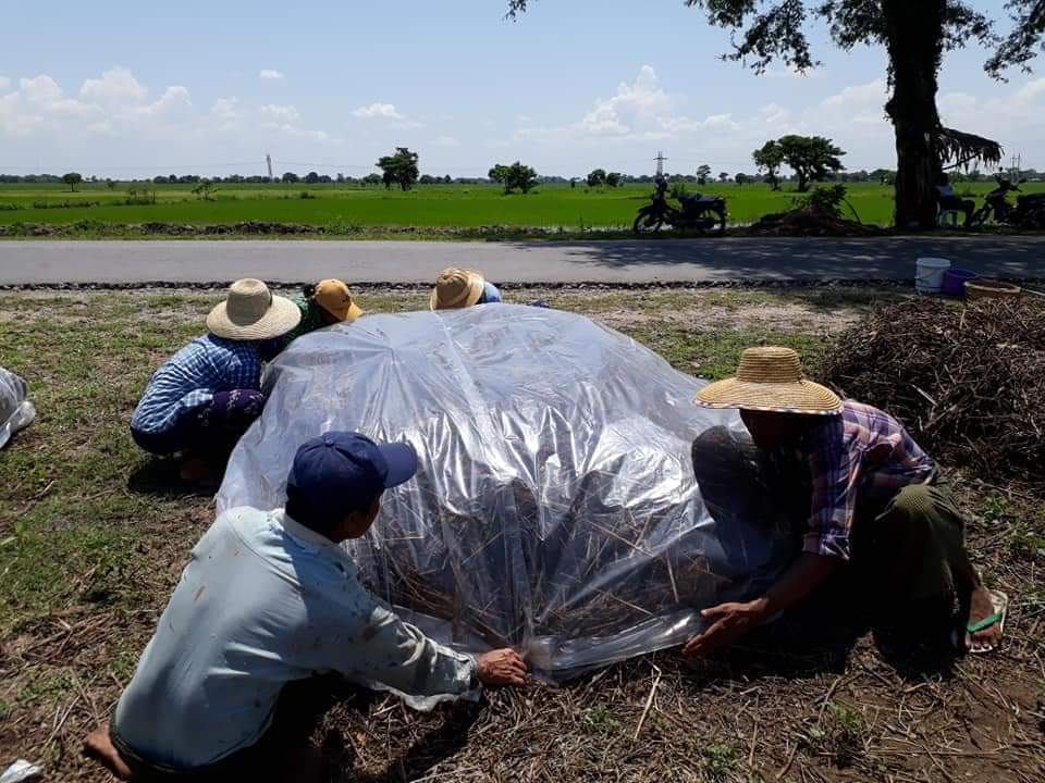 သဘာဝ ဓာတ်မြေသြဇာ ပြုလုပ်ရာတွင် ရိုးရှင်းကြောင်း၊ နေရောင်ခြည် တိုက်ရိုက် မထိတွေ့သော နေရာတွင် အလျား (၆) ပေ၊ အနံ (၃) ပေ၊ အမြင့် (၆) ပေရှိသော သစ်ရွက်ဆွေး (၁) လွှာပုံကာ၊အဆိုပါ အပုံပေါ်တွင် EM ဖျော်ရည် (၃) ဂါလံ၊ ပက်ဖြန်း ပေးပြီးနောက် နွားချေးနှင့် ဖွဲနု (၈) ပြည်ကို ရောစပ်ပြီး ပါးပါးဖြူးပြီးရင် ယင်းပုံစံ အတိုင်း (၆) လွှာပုံကာ အပေါ်မှ ပလပ်စတစ်ဖြင့်လုံခြုံစွာ ဖုံးအုပ်ပြီး ၊(၅) ရက်ခန့် ကြာသည့်အခါ မြေဆွေးပုံကို လက်ဖြင့် စမ်းကြည့်ပါ ပူနေလျှင် အထက်အောက်လှန်၍ ဆေးဖြန်းပေးပြီး (၁၀) ရက်ကြာလျှင်စတင် အသုံးပြုနိုင်ကြောင်းသိရသည်။ သဘာဝဓာတ်မြေသြဇာ အသုံး ပြုခြင်းဖြင့် သစ်ပင်၏ လိုအပ်ချက်များကို အထောက်ကူပြုသည့်အပြင် သွင်းအားစု ဆေးဝါး သုံးစွဲမှုကိုလျှော့ချနိုင် မည်ဖြစ်ကြောင်းကို စိုက်ပျိုးရေးဦးစီးဌာနမှ လက်ထောက် ဦးစီးမှူး ဒေါ်အေးမာလာ ၏ပြောကြားချက်အရသိရှိရပါသည်။