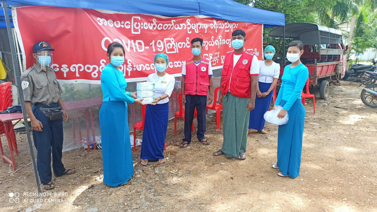 အဆိုပါ လှူဒါန်းသည့် ပစ္စည်းများအား မြို့နယ်ကြက်ခြေနီတပ်ဖွဲ့မှ တာဝန်သူရှိသူများ မြို့နယ် ပြည်သူ့ ကျန်းမာရေး ဦးစီးဌာနမှ စစ်ဆေးဂိတ် တာဝန်ကျ ဝန်ထမ်းများနှင့် စာသင်တိုက်၏ အကျိုးတော်ဆောင်များက အသီးသီးလက်ခံရယူခဲ့ကြောင်းသိရသည်။