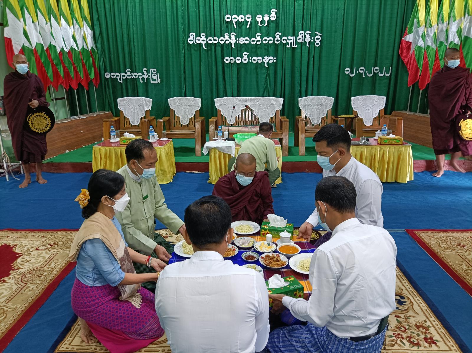 အဆိုပါ ဝါဆိုသင်္ကန်း ဆက်ကပ်လှူဒါန်းပွဲသို့ မြို့နယ်စီမံအုပ်ချုပ်ရေးအဖွဲ့ဥက္ကဌ၊ မြို့နယ် အုပ်ချုပ်ရေးမှူး ဦးစိုးဝင်း၊အတွင်းရေးမှူး ယာယီရဲမှူး အောင်နိုင်ဦး၊ အဖွဲ့ဝင်(၁)ဗိုလ်မှူး နေဝင်းနောင်၊ အဖွဲ့ဝင်(၃)လ.ဝ.က ဦးစီးမှူး ဦးအောင်စိုး၊ မြို့နယ်ဌာနဆိုင်ရာ အကြီးအကဲများ၊ မြို့နယ်အထွေထွေအုပ်ချုပ်ရေးဦးစီးဌာနဝန်ထမ်းများ တက်ရောက်ခဲ့ကြကြောင်း သိရသည်။