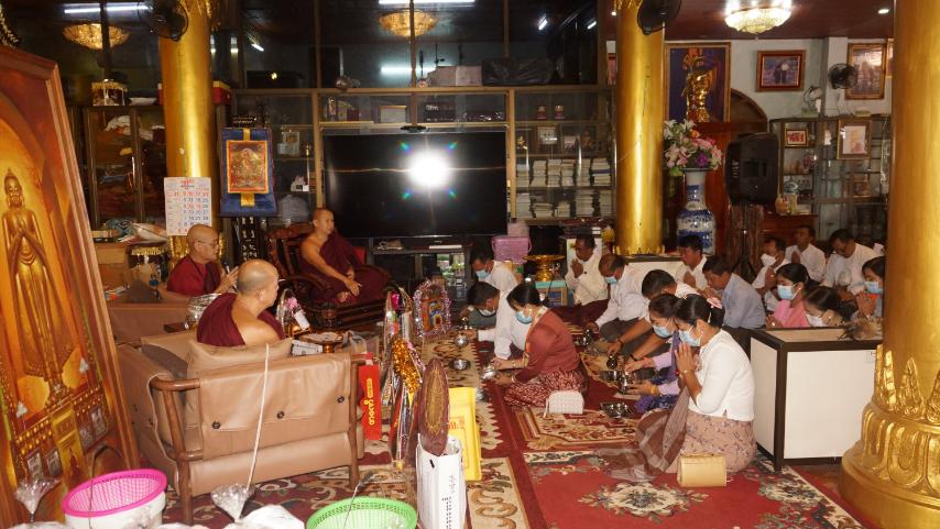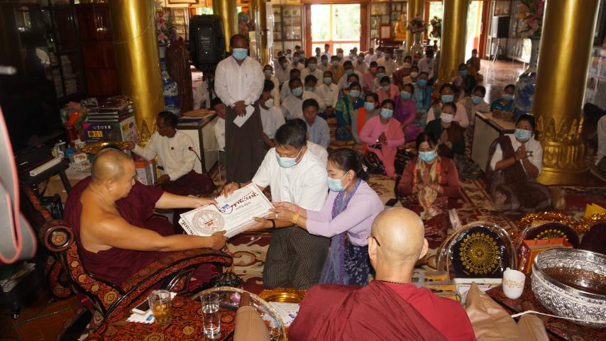 ထို့နောက် တက်ရောက်လာကြသည့် ဧည့်ပရိတ်သတ်များက ဘဒ္ဒန္တကောဝိဒ (ဝစီပိတ် ဆရာတော်)ထံမှ ရေစက်ချအနုမောဒနာတရားနာယူခဲ့ကြသည်။