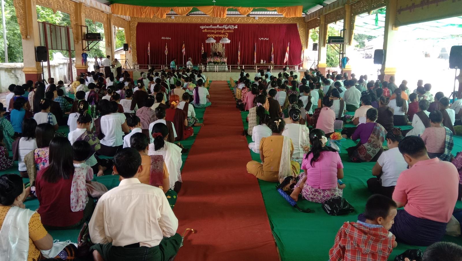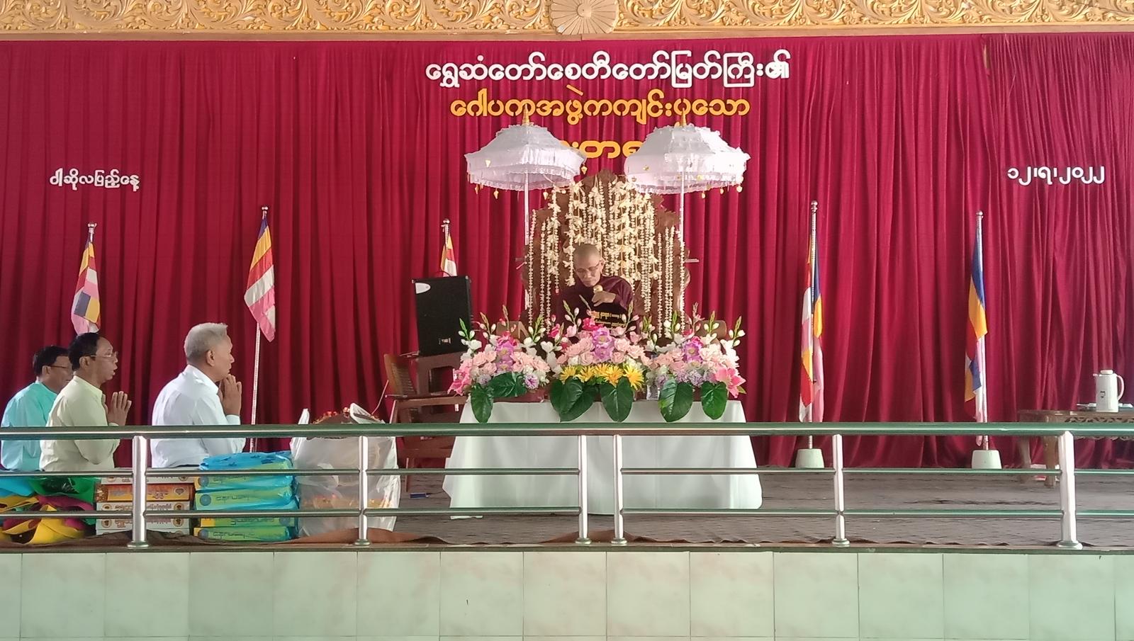 ထိုနောက် မြို့နယ်စီမံအုပ်ချုပ်ရေးအဖွဲ့နှင့် ဌာနဆိုင်ရာများ မိသားစုမှ တရားဟော ဆရာတော်အား အလှူငွေ(၃)သိန်းကျပ်ကို မြို့နယ်စီမံအုပ်ချုပ်ရေးအဖွဲ့ဥက္ကဋ္ဌ ဦးခင်မောင်မြင့်နှင့် အဖွဲ့ဝင် (၁) ဗိုလ်မှူး ဇာနည်မောင်တို့က ဆရာတော်အား ဆက်ကပ် လှူဒါန်းပေးခဲ့ပြီး အလှူရှင်များမှ ဝါဆိုသင်္ကန်းများ ဆက်ကပ်လှူဒါန်းကြသည်။ ဆက်လက်၍ ရေစက်သွန်းချတရားနာ ကြားခဲ့ကြ ကြောင်း သိရသည်။