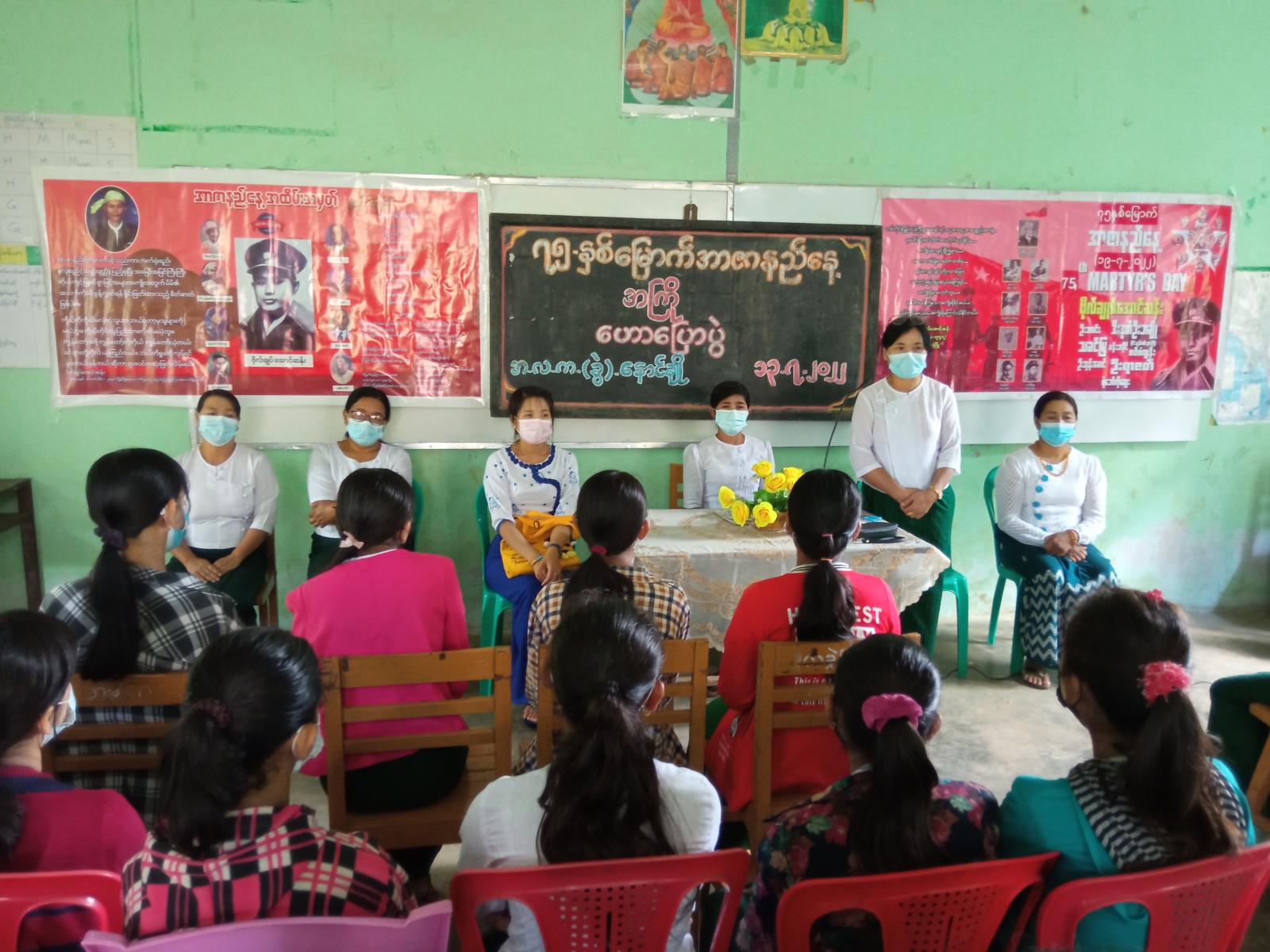 ဟောပြောပွဲတွင် ပြန်ကြားရေးနှင့်ပြည်သူ့ဆက်ဆံရေးဦးစီးအရာရှိ ဒေါ်သန်းသန်းထွေးက မြန်မာ တစ်မျိုးသားလုံးအတွက် နေ့ထူးနေ့မြတ်များတွင် တစ်ခုအပါအဝင်ဖြစ်သည့် အာဇာနည်နေ့ပြုလုပ်ရခြင်း၏ ရည်ရွယ်ချက်၊ အာဇာနည်နေ့ ဖြစ်ပေါ်လာပုံသမိုင်းကြောင်း၊ မြန်မာတစ်မျိုးသားလုံးအတွက် အားကျအတုယူ မမေ့သင့်သည့် ဗိုလ်ချုပ်အောင်ဆန်းနှင့်တကွ အာဇာနည်(၉)ဦးတို့၏ အတ္ထုပ္ပတ္တိများကို ရှင်းလင်းဟောပြောခဲ့ပြီးနောက် ကျောင်းအုပ်ဆရာမကြီး ဒေါ်ချိုမြင့်ဌေးက ဟောပြောပွဲဆောင်ရွက်ပေးမှုအပေါ် ကျေးဇူးတင်စကား ပြန်လည်ပြောကြားခဲ့ကြောင်း သိရသည်။