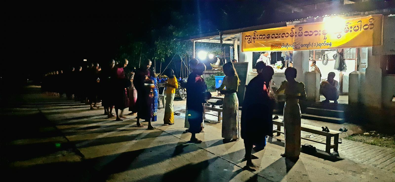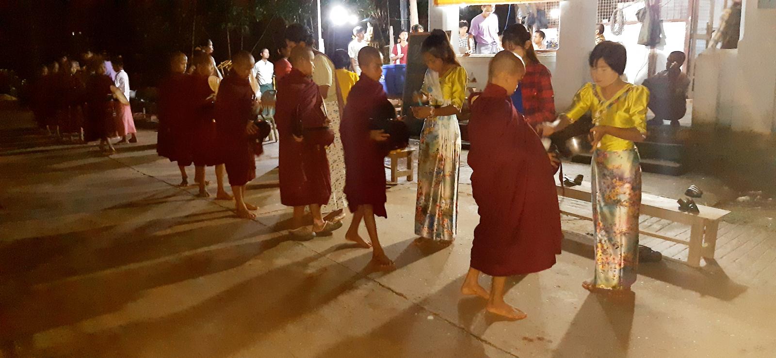 ထိုသို့ အာရုဏ်ဆွမ်းပါတ် လောင်းလှူပူဇော်ပွဲတော်ကို မြို့ပေါ်၊ နယ်ပေါ်ရှိ ဘုန်းတော်ကြီးကျောင်း (၁၆)ကျောင်းမှ ဝါဆို၊ ဝါကပ်တော်မူကြသော ရဟန်း သံဃာတော် အပါး(၁၄၁)ပါးတို့ကို ပင့်ဖိတ်၍ အမှတ်(၁)ရပ်ကွက်၊ ဆွမ်းလောင်းဓမ္မာရုံတွင် ကျွန်းကလေးလမ်း မိသားစုအလှူရှင်များ စုပေါင်းထည့်ဝင် လှူဒါန်းအပ်သော၍ သံဃာ့ဒါနအာရုဏ်ဆွမ်း၊ ဆွမ်းဟင်း အာဟာရဒါနများ၊ စာရေးတံများအား ဆက်ကပ်လောင်းလှူ ပူဇော်ကြပြီး လှူဒါန်းမှုအတွက် အလှူရှင်များက အမျှအတန်းပေးဝေ ဝမ်းမြောက်ဝမ်းသာ သာဓု(၃)ကြိမ် ခေါ်ဆိုကြကြောင်း သိရသည်။