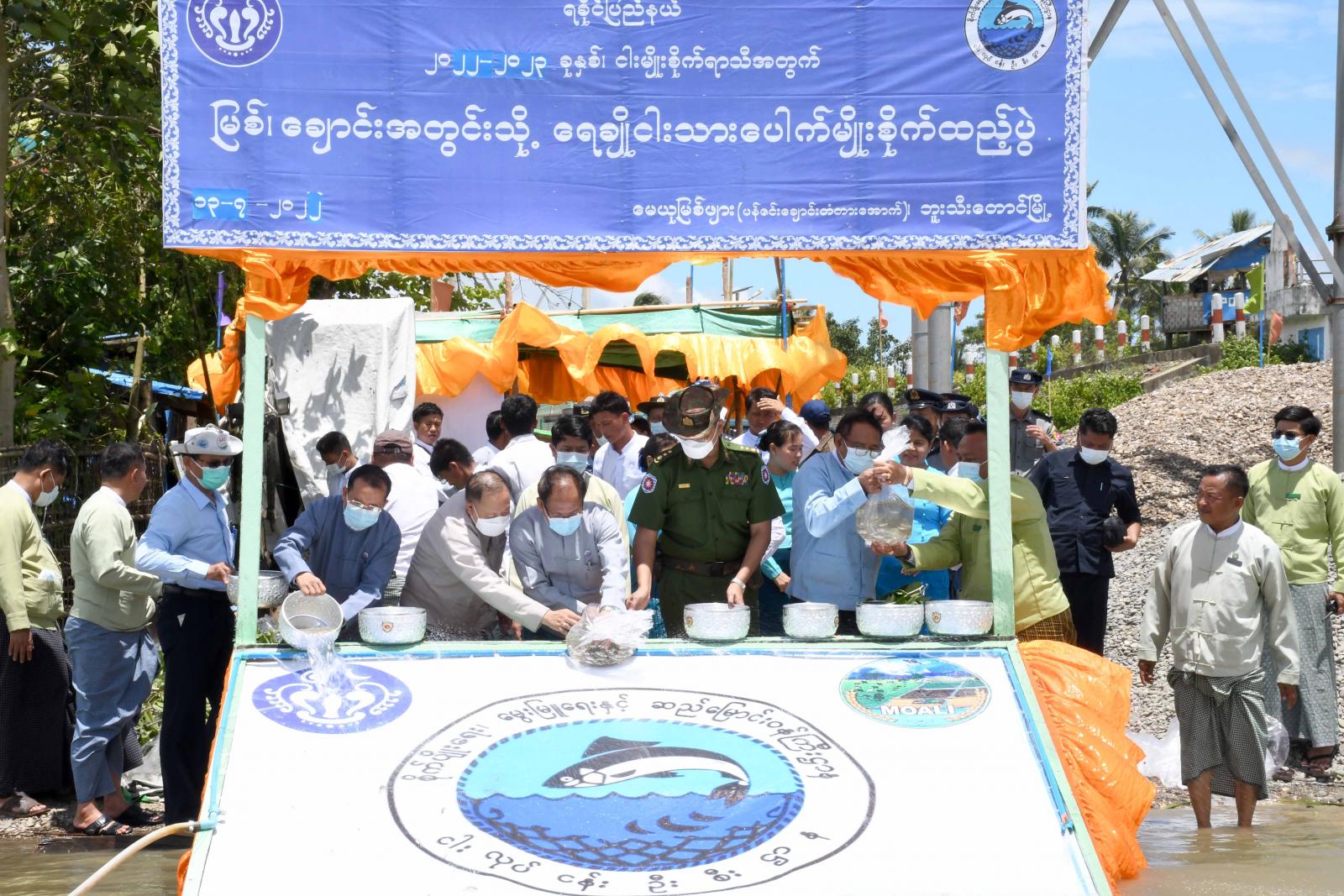ထို့နောက် ပြည်နယ်ဝန်ကြီးချုပ်နှင့် အဖွဲ့သည် ဘူးသီးတောင်မြို့နယ် ငါးလုပ်ငန်းဦးစီးဌာနမှ ပြုလုပ်သည့် ပန်းဇင်းချောင်းသို့ ငါးမျိုးစိုက်ထည့်ပွဲ အခမ်းအနားသို့ တက်ရောက်ကြပြီး ပြည်နယ် ဝန်ကြီးချုပ်နှင့် တာဝန်ရှိသူများက ပန်းဇင်းချောင်းအတွင်းသို့ ငါးမျိုးများစိုက်ထည့်ပေးကြသည်။