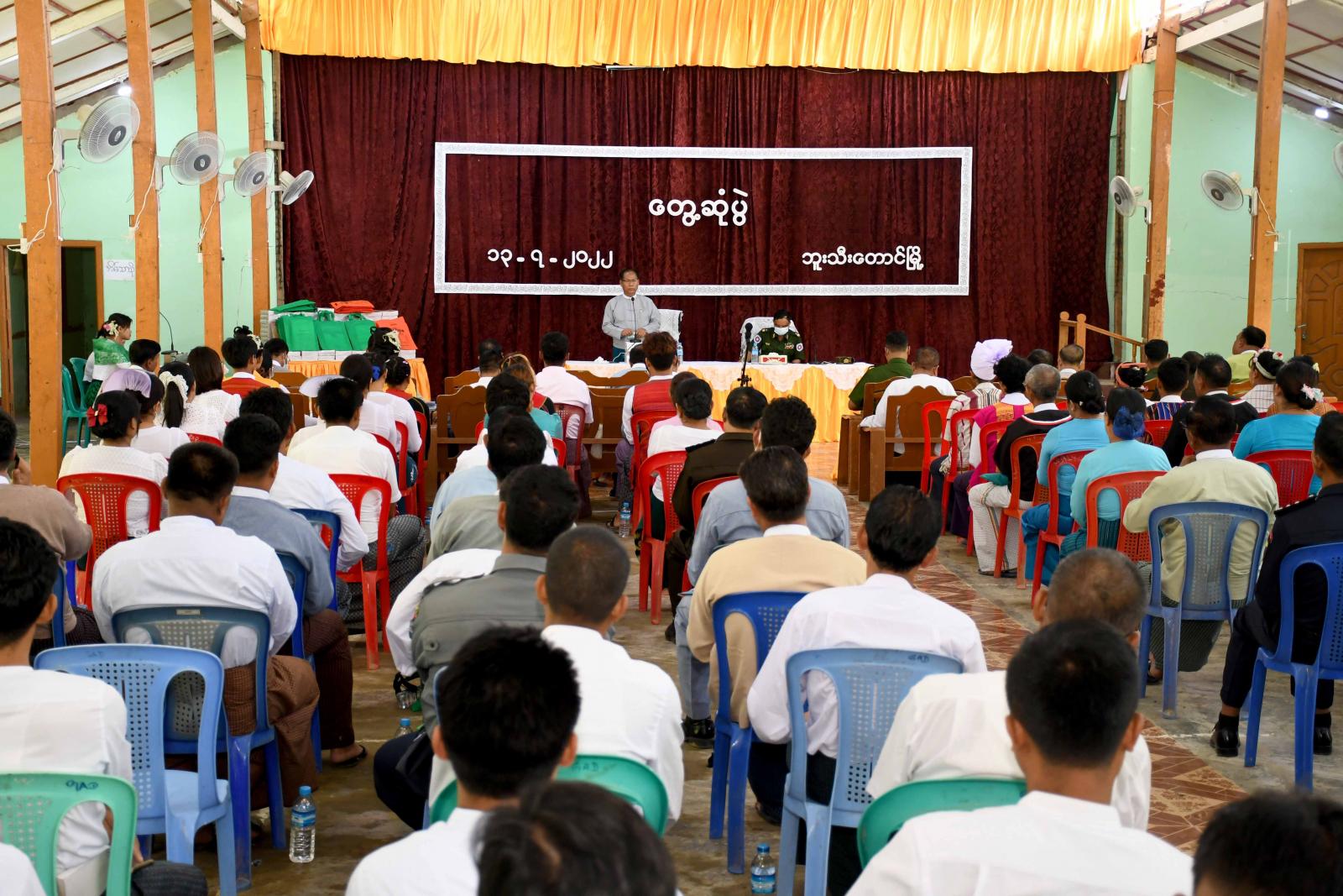 ယင်းနောက် ပြည်နယ်ဝန်ကြီးချုပ်နှင့် အဖွဲ့သည် ဘူးသီးတောင်မြို့၊ ဦးဥတ္တမခန်းမ၌ ပြုလုပ်သော ဌာနဆိုင်ရာများ၊ မြို့မိ၊ မြို့ဖများ၊ ဒေသခံပြည်သူများနှင့် တွေ့ဆုံပွဲသို့ တက်ရောက်ကြသည်။ တွေ့ဆုံပွဲတွင် ပြည်နယ်ဝန်ကြီးချုပ် ဒေါက်တာ အောင်ကျော်မင်းက ရခိုင်ပြည်နယ်အတွင်း ဒေသဖွံ့ဖြိုးတိုးတက် ရေး၊ လမ်းပန်းဆက်သွယ်ရေး ကောင်းမွန်ရေး၊ ပညာရေး၊ ကျန်းမာရေး၊ ဒေသတည်ငြိမ်အေးချမ်း ရေးအတွက် ဆောင်ရွက်နေမှုများနှင့် ပတ်သက်၍ အမှာစကား ပြောကြားကြသည်။ ထို့နောက် ပြည်နယ် ဝန်ကြီးချုပ်၊ တိုင်းမှူးနှင့် တိုင်းရင်းသားရေးရာဝန်ကြီးတို့က တိုင်းရင်းသားရိုးရာဝတ်စုံများ၊ ကျောင်းသား၊ ကျောင်းသူများ အတွက် ကျောင်းသုံး ဗလာစာအုပ်များကို ထောက်ပံ့ပေးကြပြီး မြို့မိ၊ မြို့ဖများ၊ ဒေသခံပြည်သူများက မြို့နယ် ဖွံ့ဖြိုးတိုးတက်ရေးအတွက် လိုအပ်ချက်များကို တင်ပြကြသည်။