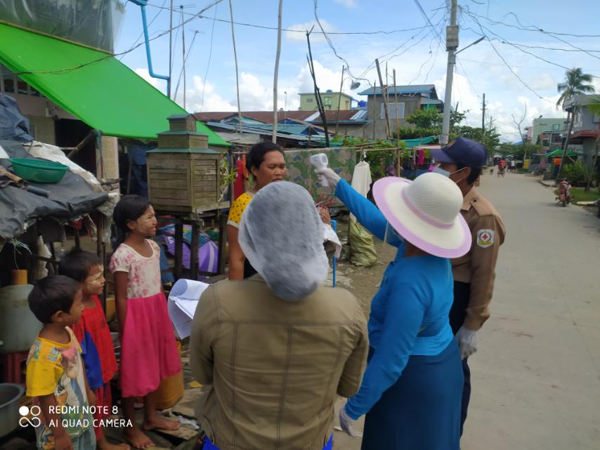 ရန်ကုန်တိုင်းဒေသကြီး၊ မြောက်ပိုင်းခရိုင်၊ လှိုင်သာယာ(အနောက်ပိုင်း) မြို့နယ်အတွင်းရှိ ရပ်ကွက် ကျေးရွာအုပ်ချုပ်ရေးမှူးများနှင့် မြို့နယ်ကျန်းမာရေးဌာနမှ ဆရာမများ၊ အမျိုးသမီးရေးရာ အဖွဲ့ဝင်များ ပူးပေါင်း၍ ရပ်ကွက်/ကျေးရွာများအတွင်း နေထိုင်ကြသည့် ပြည်သူများအား ကိုဗစ်−၁၉ ရောဂါ ကာကွယ်ထိန်းချုပ်ရေးအနေဖြင့် အိမ်တိုင်ရာရောက် လိုက်လံ၍ ကျန်းမာရေးစစ်ဆေးခြင်းများ ဆောင်ရွက်ခဲ့ရာ ဒေသခံပြည်သူများမှ ကြည်ဖြူစွာ ပူးပေါင်းပါဝင်ဆောင်ရွက်ခဲ့ကြပြီး တစ်ဦးချင်း ကိုယ်အပူချိန်တိုင်းတာပေးခြင်း၊ အပြင်သွားပါက နှာခေါင်းစည်း Mask များ မဖြစ်မနေ တပ်ဆင်ရန် မှာကြားခြင်း၊ ကိုဗစ်−၁၉ ရောဂါ ကာကွယ်ထိန်းချုပ်နိုင်ရေးအတွက် လူစုလူဝေးမပြုလုပ်ရန်၊ တစ်ဦးနှင့် တစ်ဦး ခြောက်ပေအကွာနေထိုင်ကြရန်၊ လက်များကို မကြာခဏ စက္ကန့်(၂၀)ကြာအောင်စနစ်တကျ ဆေးကြောရန်၊ ကျန်းမာရေးနှင့်အားကစားဝန်ကြီးဌာနမှ ထုတ်ပြန်ထားသည့် အတိုင်း တိကျစွာလိုက်နာ ဆောင်ရွက်ကြရန် အသိပညာပေး ဆောင်ရွက်သည်။