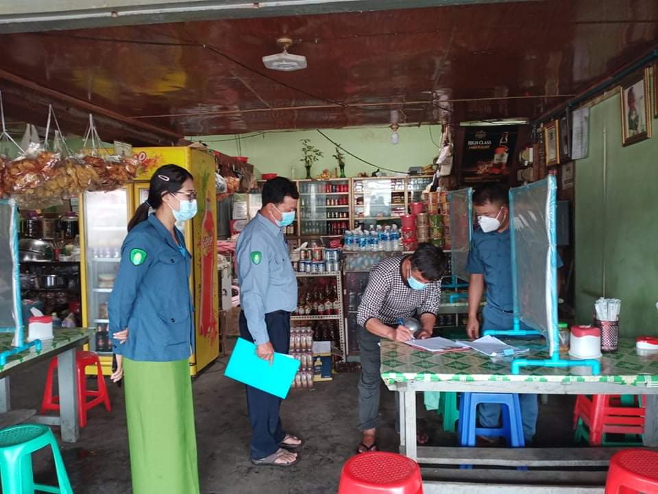 မူဆယ်ခရိုင်၊ တာမိုးညဲမြို့၌ ကိုဗစ်-၁၉ ရောဂါ ကူးစက်ခြင်းမှ ကြိုတင်ကာကွယ်ရေးအတွက် ဈေးဆိုင်များနှင့် စားသောက်ဆိုင်များကို ကျန်းမာရေးဝန်ကြီးဌာနက ထုတ်ပြန် ထားသည့် လမ်းညွှန်စည်းကမ်းချက်များနှင့်အညီ ဈေးရောင်းချမှုရှိ/မရှိ လိုက်လံကြည့်ရှုစစ်ဆေးခြင်းကို ယမန်နေ့ နံနက်(၉)နာရီအချိန်ခန့်က တာမိုးညဲမြို့၊ မြို့နယ်(ခွဲ) စည်ပင် သာယာရေး ဌာနမှ ကွင်းဆင်းစစ်ဆေးခဲ့သည်။