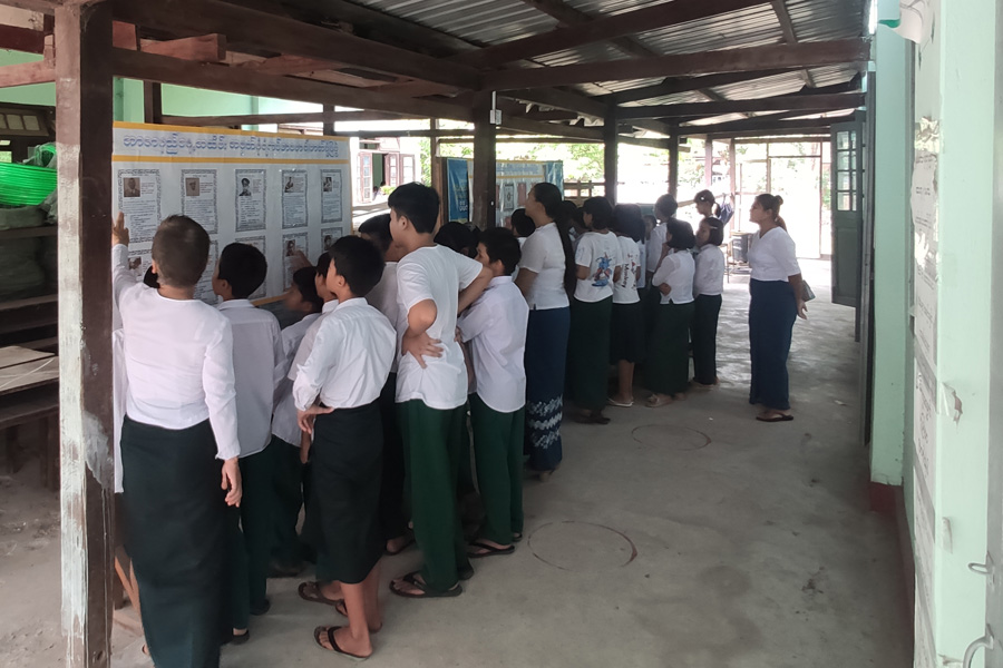 ဆက်လက်၍ မြို့နယ်ပြန်ကြားရေးနှင့်ပြည်သူ့ဆက်ဆံရေးဦးစီးဌာနမှ (၇၅)နှစ်မြောက်အာဇာနည်နေ့အထိမ်းအမှတ် နံရံကပ်စာစောင်နှင့် ဓာတ်ပုံများအားပြသထားရာ ကျောင်းသား၊ ကျောင်းသူများက စိတ်ပါဝင်စားစွာ လေ့လာမှတ်သားကြည့်ရှုခဲ့ကြကြောင်း သိရသည်။