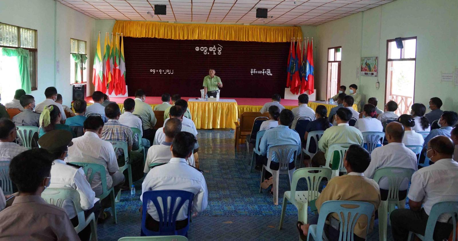 ရှမ်းပြည်နယ်(အရှေ့ပိုင်း)၊ မိုင်းယန်းမြို့နယ်၌ ပြည်နယ်အဆင့်ဌာနဆိုင်ရာများမှ မိုင်းယန်းခရိုင်/ မြို့နယ်အဆင့်ဌာနဆိုင်ရာများ၊ မြို့မိ၊ မြို့ဖများနှင့် တွေ့ဆုံပွဲအခမ်းအနားကို ယမန်နေ့မွန်းလွဲ ၃ နာရီခွဲခန့်က မြို့နယ်အထွေထွေအုပ်ချုပ်ရေးဦးစီးဌာနရုံး အစည်းအဝေးခန်းမ၌ ကျင်းပခဲ့ကြောင်း သိရသည်။