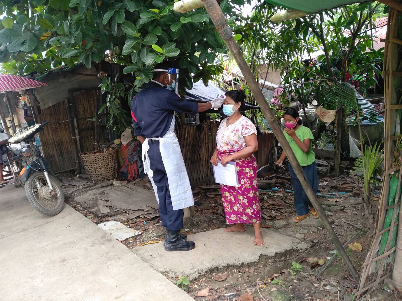 ထိုသို့ဆောင်ရွက်ရာတွင် နှာခေါင်းစည်းMaskများစနစ်တကျတပ်ဆင်၍ သတ်မှတ်အကွာအဝေး ဖြင့် ကိုယ်ပူချိန်တိုင်းတာပေးခြင်း၊ ဖျားနားခြင်းရှိမရှိ စစ်ဆေးပေးခြင်း၊ ကိုဗစ်-၁၉ရောဂါ တွေ့ရှိလူနာများနှင့် အနီးကပ်ထိတွေ့မှုရှိမရှိ (Contact tracing)များအားကွင်းဆင်းရှာဖွေခြင်းနှင့် မဖြစ်မနေ အပြင်ထွက်မည်ဆိုပါက နှာခေါင်းစည်းMaskများ စနစ်တကျတပ်ဆင်ပြီးမှသာ သွားလာကြ ရန်နှင့် ကျန်းမာရေးစစ်ပေးခြင်းကို မြို့နယ်ဒေသန္တရကျန်းမာရေးမှ ဝန်ထမ်းများ၊ မြို့နယ် မီးသတ်တပ်ဖွဲ့ဝင်များ၊ ကြက်ခြေနီသူနာပြုအဖွဲ့များ ပရဟိတအဖွဲ့များ ရပ်ကွက် အုပ်ချုပ်ရေး အဖွဲ့များပူးပေါင်း၍ ကိုဗစ်-၁၉ ရောဂါပြန့်ပွားမှုမရှိစေရန် ကျန်းမာရေး စစ်ဆေး ပေးခြင်းနှင့် ကျန်းမာရေးနှင့်အားကစား ဝန်ကြီးဌာန၏ နေ့စဉ်ထုတ်ပြန်ချက်များအား သိရှိ လိုက်နာစေရေး အသိပညာပေးခြင်းများကို အရှိန်မြှင့် ဆောင်ရွက်လျက်ရှိကြောင်း သိရသည်။