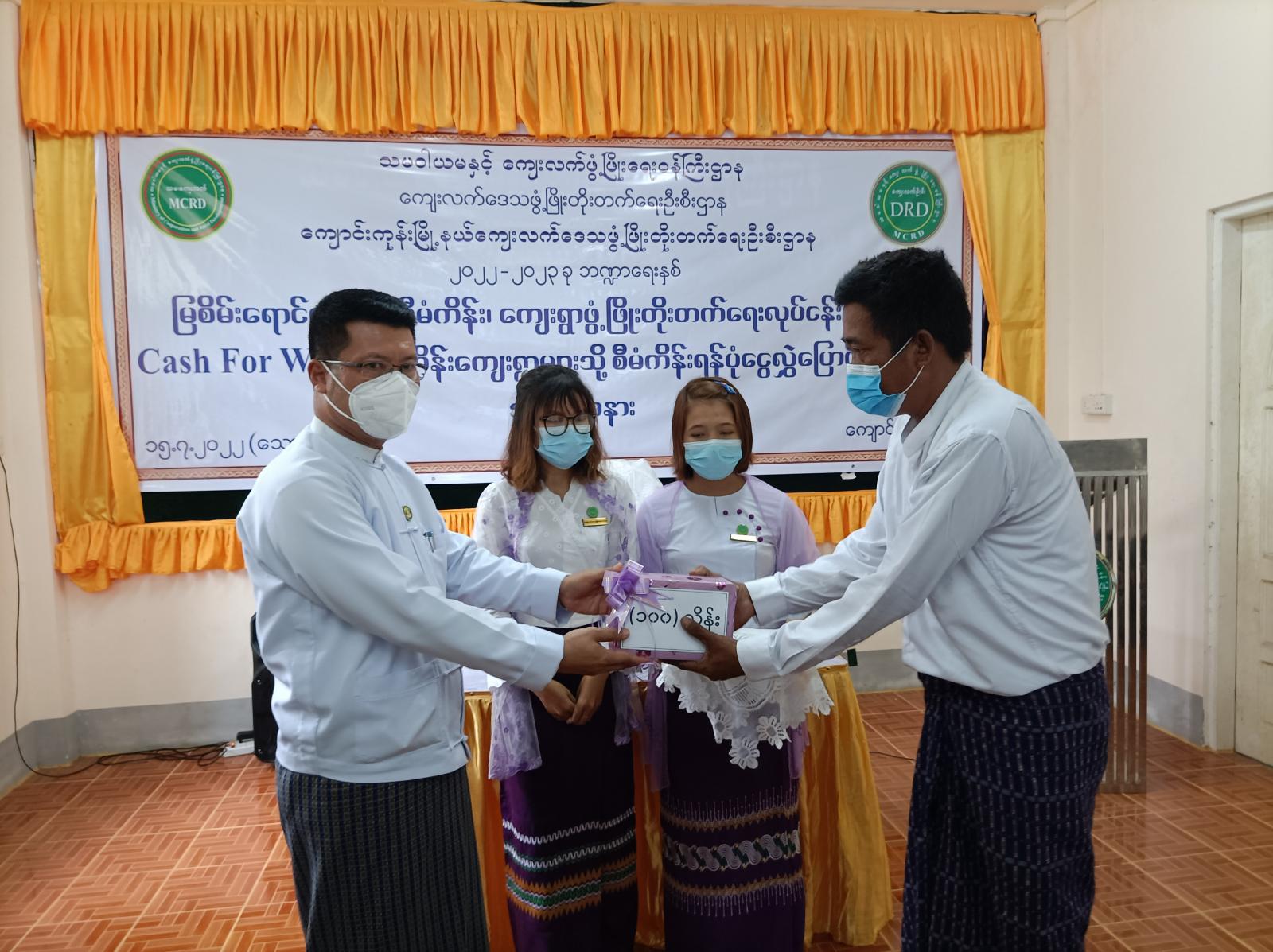 ဧရာဝတီတိုင်းဒေသကြီး အစိုးရအဖွဲ့ဝန်ကြီးချုပ် ဦးတင်မောင်ဝင်းမှ ကံကုန်း-ကြူကွင်း ကျေးရွာသို့ မြစိမ်းရောင်စီမံကိန်းရန် ပုံငွေကိုလည်းကောင်း၊ ပေါက်ငူကျေးရွာသို့ ကျေးရွာ ဖွံ့ဖြိုးတိုးတက်ရေး လုပ်ငန်းစီမံကိန်း (VDP) စီမံကိန်းရန်ပုံငွေကို လည်းကောင်း၊ ဗြိုက်ကြီးကုန်းစု ကျေးရွာသို့ Cash For Work စီမံကိန်း ရန်ပုံငွေကိုလည်းကောင်း အသီးသီး လွှဲပြောင်းပေးအပ်ရာ စီမံကိန်းရန်ပုံငွေ ရရှိကြသူများက လက်ခံရယူခဲ့ကြပြီး၊ ကျေးရွာသူ ကျေးရွာသားများကိုယ်စား ကျေးရွာကော်မတီဝင်တစ်ဦးက ကျေးဇူးတင်စကား ပြန်လည် ပြောကြားခဲ့သည်။