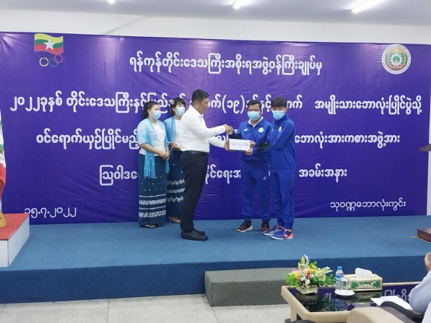 “မြန်မာ့အားကစားကမ္ဘာကို လွမ်းရမည်” ဟူသောဆောင်ပုဒ်နှင့်အညီ စွမ်းရည်မြင့်မားသော အားကစားလူငယ်လေးများကို ပိုမိုတိုးပွားလာစေရန်အတွက် နိုင်ငံတော်မှ အားကားစားပြိုင်ပွဲ များကို စဉ်ဆက်မပြတ် ကျင်းပဆောင်ရွက်လျက်ရှိရာ ယမန်နေ့ မွန်းလွဲ (၃)နာရီ အချိန်တွင် သုဝဏ္ဏဘောလုံးကွင်း၌ ၂၀၂၂ ခုနှစ်၊ တိုင်းဒေသကြီးနှင့် ပြည်နယ်အသက် ၁၉ နှစ်အောက် အမျိုးသားဘောလုံး ပြိုင်ပွဲသို့ ဝင်ရောက်ယှဉ်ပြိုင်မည့် ရန်ကုန်တိုင်းဒေသကြီး ကိုယ်စားပြု ဘောလုံးအားကစား အဖွဲ့များအား အောင်နိုင်ရေးအလံ ပေးအပ်ပွဲကို ကျင်းပခဲ့ကြောင်း သိရသည်။