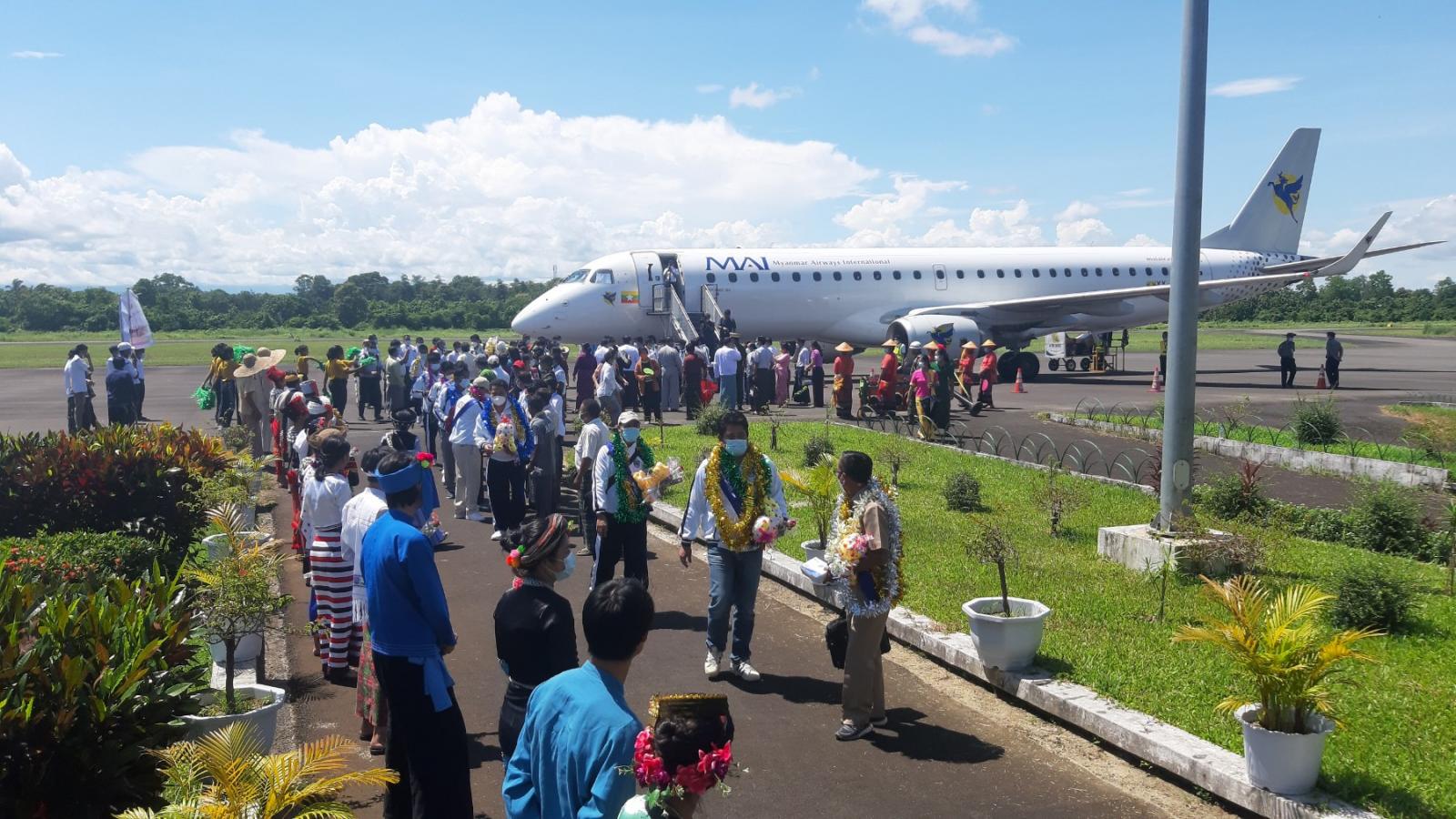 အားကစားနှင့်လူငယ်ရေးရာဝန်ကြီးဌာနနှင့် မြန်မာနိုင်ငံပိုက်ကျော်ခြင်းအဖွဲ့ချုပ်တို့ပူးပေါင်း၍ နေပြည်တော်တွင် ကျင်းပပြုလုပ်သည့် ၂၀၂၂ ခုနှစ် တိုင်းဒေသကြီးနှင့် ပြည်နယ်ပိုက်ကျော်ခြင်း ပြိုင်ပွဲတွင်အောင်ပွဲရ ကချင်ပြည်နယ်လက်ရွေးစင်အသင်းကစားသမားများအား ယမန်နေ့ မွန်းလွဲ ၂ နာရီက မြစ်ကြီးနားလေဆိပ်၌ ကချင်ပြည်နယ်ဝန်ကြီးချုပ် ဦးခက်ထိန်နန်နှင့် တာဝန်ရှိသူများက ဂုဏ်ပြုကြိုဆိုခဲ့ကြသည်။