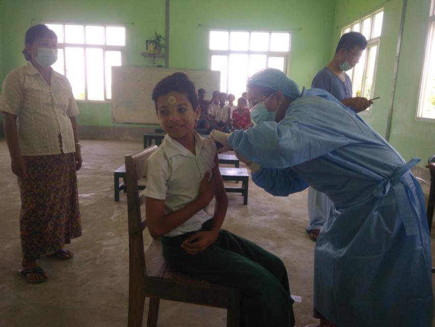 အဆိုပါ ကိုဗစ်-၁၉ ရောဂါ ကာကွယ်ဆေးထိုးနှံရာတွင် အသက် (၅) နှစ်မှ (၁၂) နှစ်အတွင်း (၇၆) ဦး၊ အသက် (၁၂) နှစ်အထက် (၁၅) ဦး စုစုပေါင်း (၉၁) ဦးအား ကျန်းမာရေး ဝန်ထမ်းများက ထိုးနှံပေးကြပြီး ဆရာ၊ ဆရာမများ၊ ကျောင်းအကျိုးဆောင်များ၊ ကျေးရွာအုပ်ချုပ်ရေးအဖွဲ့များက သတ်မှတ်နေရာသို့ လိုက်ပါပို့ဆောင်ပေးခြင်း၊ လိုအပ်သည့် ကူညီမှုများဆောင်ရွက်ပေးခြင်း၊ စာရင်းမှတ်တမ်းရေးသွင်းခြင်း၊ ကောက်ယူခြင်းတို့ကို စနစ်တကျဆောင်ရွက်ပေးခဲ့ပြီး ကိုဗစ်-၁၉ စည်းကမ်းနှင့်အညီ ပူးပေါင်းကူညီ ဆောင်ရွက်ခဲ့ကြကြောင်း သိရသည်။