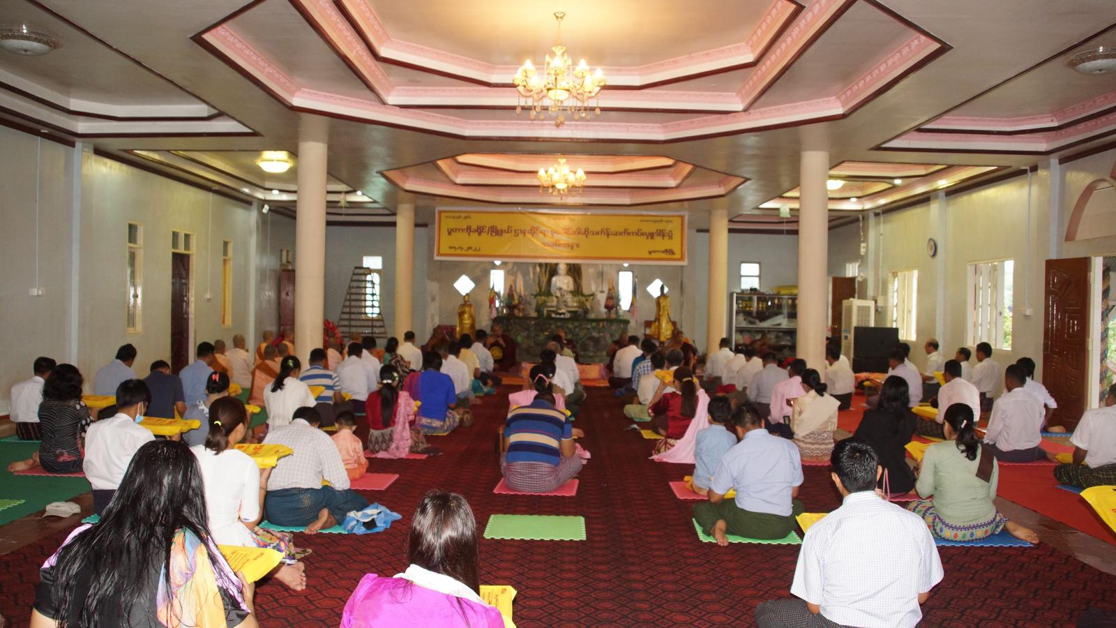 အခမ်းအနားတွင် ကြွရောက်လာသည့် ဧည့်ပရိသတ်အပေါင်းက “နမောဿ” သုံးကြိမ်ရွတ်ဆိုကာ အခမ်းအနားစတင်ဖွင့်လှစ်ပြီး ပူတာအိုမြို့ ဟိုခိုရပ်ကွက်ရှိ ဇေယျာသိဒ္ဓိကျောင်းတိုက် ဆရာတော်ထံမှ တက်ရောက်လာသည့် ပရိသတ်များက ရှစ်ပါးသီလ ခံယူဆောက်တည်ကြသည်။