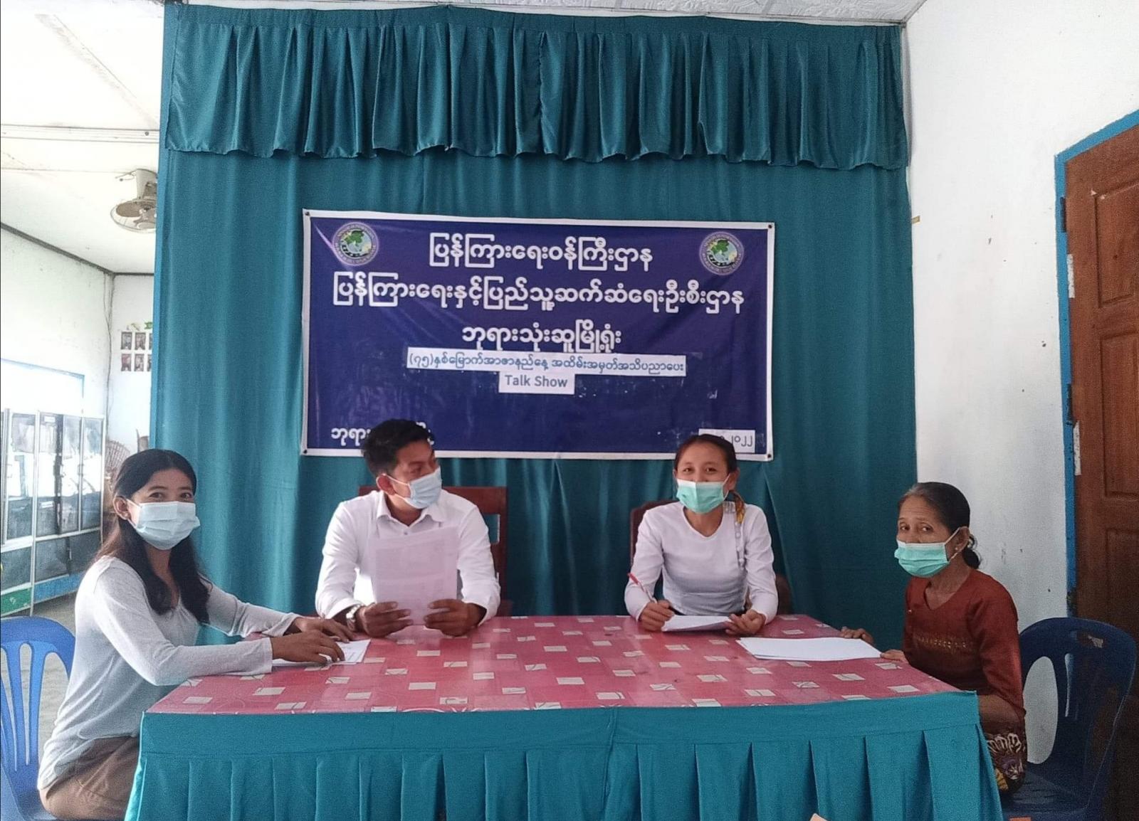 ကရင်ပြည်နယ်၊ ကော့ကရိတ်ခရိုင် ဘုရားသုံးဆူမြို့ ပြန်ကြားရေးနှင့်ပြည်သူ့ဆက်ဆံရေးဦးစီးဌာန၊ (Community Center) ခန်းမ၌ ယနေ့နံနက် ၁၁ နာရီက (၇၅)နှစ်မြောက် အာဇာနည်နေ့ အထိမ်းအမှတ် အသိပညာပေး (Talk show) ဆွေးနွေးပွဲကို Book Club အဖွဲ့၀င်များနှင့်အတူ ကျင်းပပြုလုပ်သည်