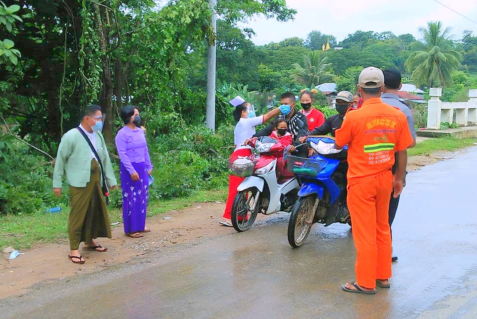 ယင်းနောက် ကိုဗစ်-၁၉ ရောဂါ ကူးစက်ပြန့်ပွားမှု မဖြစ်ပေါ်စေရေးအတွက် အိမ်အပြင်ထွက်ခွာပါက ကျန်းမာရေး ညွှန်ကြားချက်များနှင့်အညီ Mask တပ်ဆင်သွားလာကြရန် အသိပေးပြောကြားပြီး Mask တပ်ဆင်သွားလာခြင်း မရှိသူများအား ဒဏ်ပေးစနစ်ဖြင့် Mask ၁၀ ခုကို ချက်ချင်းဝယ်ယူ တပ်ဆင်စေခဲ့ကြောင်းနှင့် အများပြည်သူများအနေဖြင့် မည်သူမဆို နေအိမ်ပြင်ပထွက်ခွာပါက မဖြစ်မနေ Mask တပ်ဆင်သွားလာရေးနှင့် အသိပညာပေး လုပ်ငန်းများကို ပူးပေါင်းအဖွဲ့ဖြင့် နေ့စဉ်ဆောင်ရွက်သွားမည်ဖြစ်ကြောင်း သိရှိရသည်။