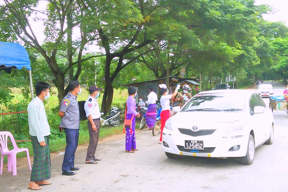 ရှမ်းပြည်နယ်အရှေ့ပိုင်း တာချီလိတ်ခရိုင် တာလေမြို့၌ ကိုဗစ်-၁၉ ရောဂါ ကူးစက်ပြန့်ပွားမှု မဖြစ်ပေါ်စေရေးအတွက် အများပြည်သူများ အိမ်အပြင်ထွက်ခွာရာတွင် Mask တပ်ဆင်သည့် အလေ့အထကောင်းများ ရရှိစေပြီး ကျန်းမာရေးနှင့်အားကစားဝန်ကြီးဌာနမှ ထုတ်ပြန်ထားသော ညွှန်ကြားချက်များနှင့်အညီ လိုက်နာဆောင်ရွက်ခြင်းဖြင့် ကိုဗစ်-၁၉ ရောဂါ ကြိုတင်ကာကွယ်နိုင်ရန် ရည်ရွယ်၍ ခရီးသွားပြည်သူများ လမ်းသွား၊ လမ်းလာ ပြည်သူများအား Mask တပ်ဆင်ခြင်း ရှိ/မရှိ စစ်ဆေးခြင်းနှင့် Mask တပ်ဆင်ခြင်း မရှိသော ပြည်သူများအား Mask တပ်ဆင်စေခြင်းကို ယနေ့ နံနက်ပိုင်းမှ စတင်ပြီး တာလေမြို့ တာလေတံတားရှိ ကိုဗစ်-၁၉ ကြိုတင်ကာကွယ်ရေးနှင့် စစ်ဆေးရေး ဂိတ်တွင် ဆောင်ရွက်လျက်ရှိကြောင်း သိရသည်။