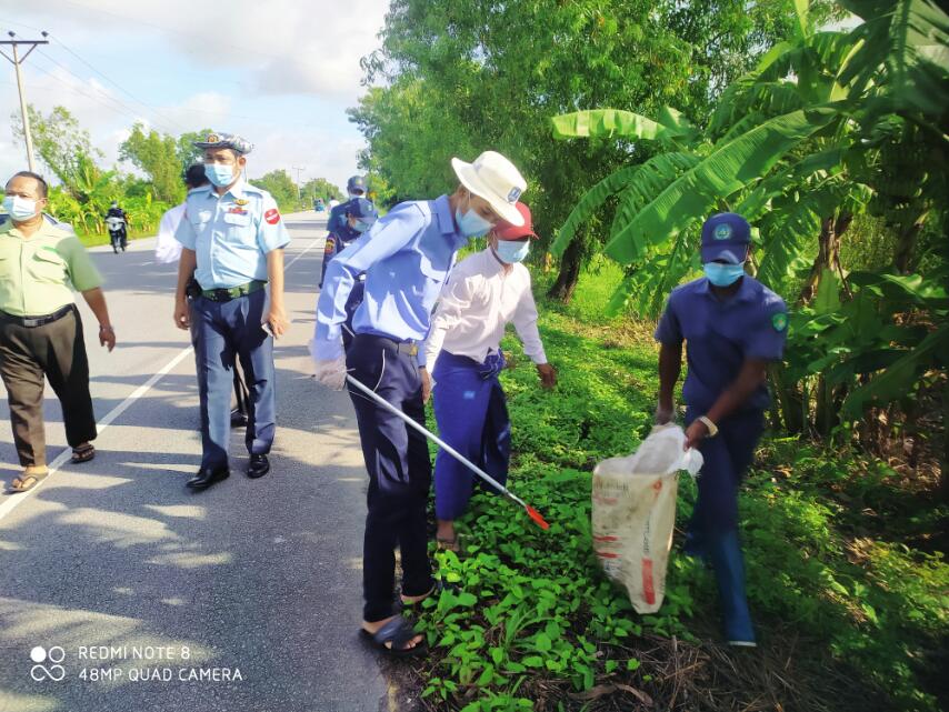 အဆိုပါ သန့်ရှင်းရေးဆောင်ရွက်ရာသို့ မြို့နယ်စီမံအုပ်ချုပ်ရေးအဖွဲ့က လိုက်လံကြည့်ရှုစစ်ဆေးခဲ့ပြီး အထွေထွေ အုပ်ချုပ်ရေးဦးစီးဌာန ဝန်ထမ်းများ၊ မြို့နယ်စည်ပင်သာယာရေးအဖွဲ့မှ ဝန်ထမ်းများ၊ ဌာနဆိုင်ရာ ဝန်ထမ်းများ နှင့် မြို့နယ်မီးသတ်တပ်ဖွဲ့ဝင်များက ပလပ်စတစ်အမှိုက်များ ကောက်ယူ ရှင်းလင်းခြင်း၊ အမှိုက်များ ရှင်းလင်း ခြင်း၊ သစ်ကိုင်းများခုတ်ထွင်ရှင်းလင်းခြင်း၊ ရေစီးရေလာ ကောင်းမွန်အောင် ဆောင်ရွက်ခြင်းတို့ဖြင့် မြို့နယ် အတွင်း သန့်ရှင်းသာယာလှပစေရေးနှင့် ပတ်ဝန်းကျင် စိမ်းလန်းစိုပြေရေးအတွက် စုပေါင်းသန့်ရှင်းရေး ဆောင်ရွက်ခဲ့ကြကြောင်း သိရသည်။