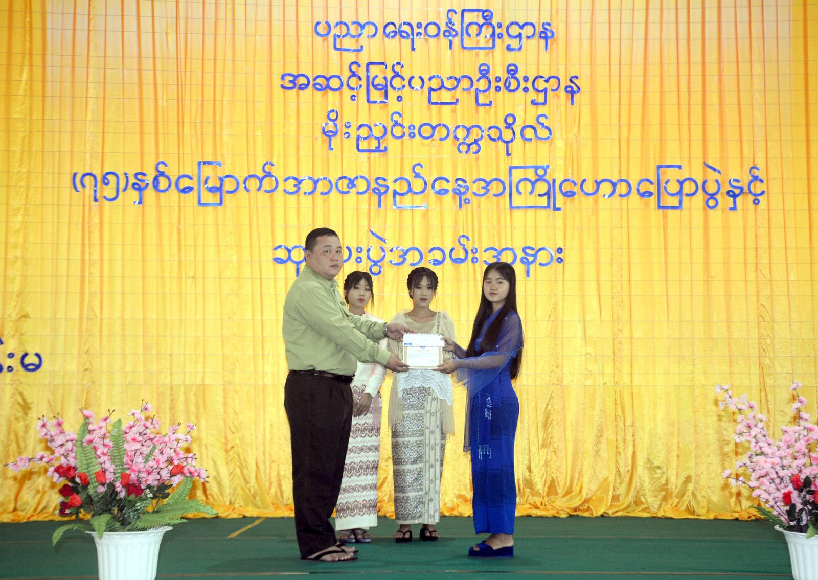 ထို့နောက် (၇၅)နှစ်မြောက် အာဇာနည်နေ့ အထိမ်းအမှတ်အဖြစ် တက္ကသိုလ်အဆင့် စာစီစာကုံး၊ ကဗျာနှင့် ဆောင်းပါးပြိုင်ပွဲများတွင် ဆုများရရှိခဲ့ကြသည့် ကျောင်းသား၊ ကျောင်းသူများကို မြို့နယ် စီမံအုပ်ချုပ်ရေးအဖွဲ့ ဥက္ကဋ္ဌ ဦးမြတ်ခိုင်ကို၊ အဖွဲ့ဝင်ဗိုလ်မှူး အားကာဦး၊ ခရိုင်ပညာရေးမှူး ဒေါ်သန်းသန်းမြင့်နှင့် ပါမောက္ခ(ဌာနမှူး) ဆရာ၊ ဆရာမကြီးများက ဆုများအသီးသီးချီးမြှင့်ပေးအပ်ခဲ့ ကြောင်း သိရသည်။