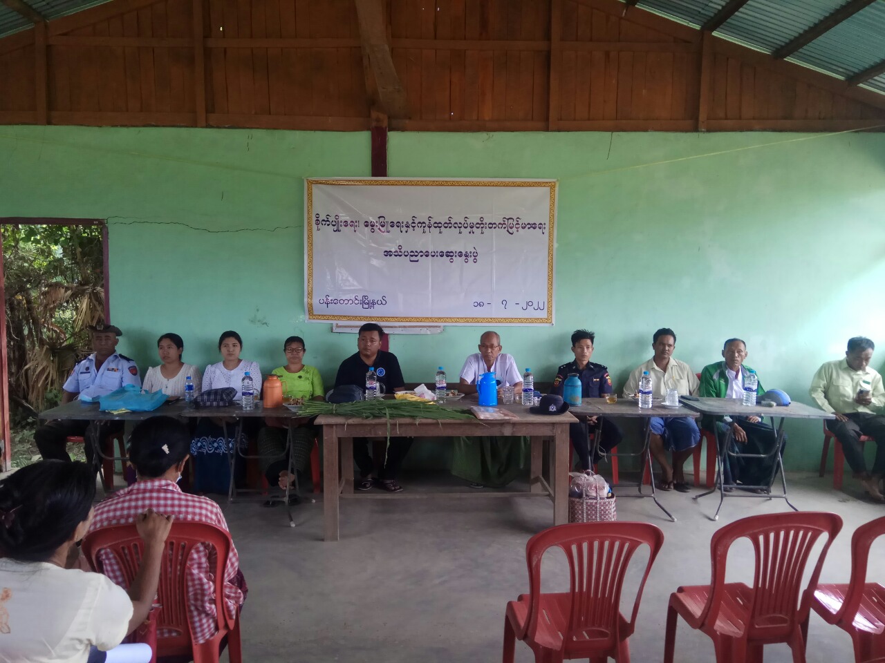 အသိပညာပေး ဆွေးနွေးပွဲတွင် မြို့နယ်အထွေထွေအုပ်ချုပ်ရေးဦးစီးဌာန မြို့အုပ်ချုပ်ရေးမှူး ဦးကျော်ဇင်ဦးက အဖွင့်အမှာစကားပြောကြားပြီ၊ မြို့နယ်စီမံအုပ်ချုပ်ရေးအဖွဲ့၊ အဖွဲ့ဝင်(၂)ဦးအေးကြိုင်က ဌာနဆိုင်ရာများမှ မိမိဌာနနှင့်ပတ်သက်သည်များကို အသိပညာပေး ပြောသွားမည်ဖြစ်ကြောင်း၊ စိုက်ပျိုးရေးနှင့် ပတ်သက်သည့် စိုက်ပျိုးမည်ဆိုပါက သီးထပ်၊ သီးညှပ် စိုက်ပျိုးရန် လိုအပ်ကြောင်း ပြောကြားခဲ့သည်။ စိုက်ပျိုးရေးဦးစီးဌာန၊ မွေးမြူရေးနှင့်ကုသရေးဦးစီးဌာန၊ မီးသတ်ဦးစီးဌာန၊ သမဝါယမဦးစီးဌာန၊ ကျေးလက်ဒေသဖွံ့ဖြိုးရေးဦးစီးဌာန၊ မြို့နယ်လူဝင်မှုကြီးကြပ်ရေးနှင့်ပြည်သူ့အင်အားဆိုင်ရာဦးစီးဌာန၊ မြေစာရင်းဦးစီးဌာန၊ မြန်မာနိုင်ငံရဲတပ်ဖွဲ့၊ တာဝန်ရှိသူများက ပညာပေးဆွေးနွေးခဲ့သည်။ တက်ရောက်လာသော ဒေသခံပြည်သူများက သိရှိလိုသည်များကို ပြန်လည်တင်ပြရာ မြို့နယ်စီမံအုပ်ချုပ်ရေးအဖွဲ့၊ ဌာနများမှ တာဝန်ရှိသူများက ပြန်လည်ဆွေးနွေးညှိနှိုင်းဆောင်ရွက်ပေးခဲ့ကြောင်း သိရသည်။