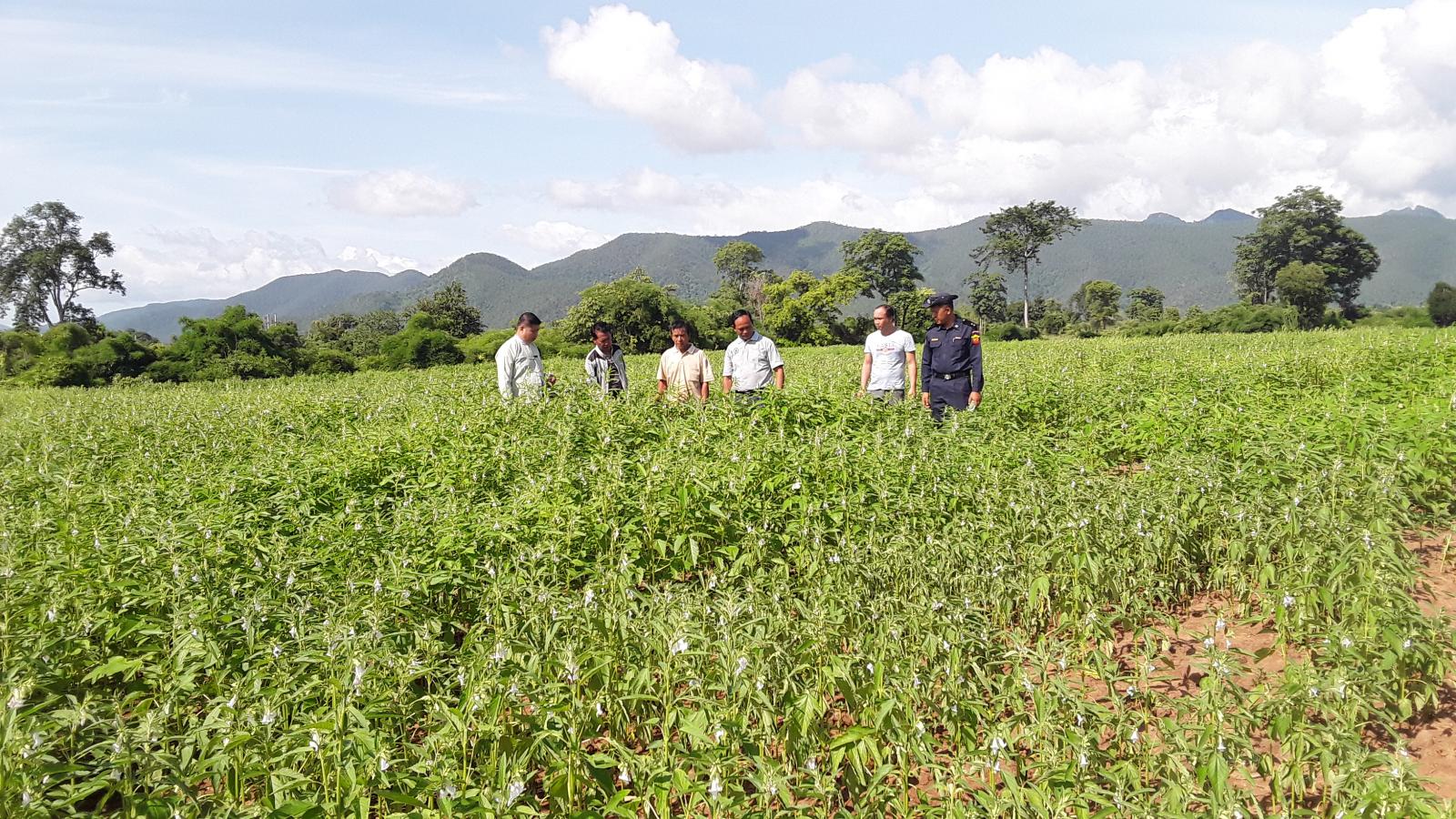 ကယားပြည်နယ်၊ ဘောလခဲခရိုင်၊ ဖားဆောင်းမြို့နယ်အတွင်း ဆီထွက်သီးနှံမိုးနှမ်းစိုက်ဧကများ တိုးချဲ့စိုက်ပျိုးနိုင်ရေးနှင့် အောင်မြင်ဖြစ်ထွန်းလျက်ရှိသော နှမ်းစိုက်ခင်းများ အား မြို့နယ်စီမံအုပ်ချုပ်ရေး အဖွဲ့ဥက္ကဋ္ဌ၊ မြို့နယ်အုပ်ချုပ်ရေးမှူး ဦးသက်မြင့်ဦးနှင့် အဖွဲ့ဝင်များက ယနေ့ နံနက် ၈ နာရီအချိန်တွင် ဝမ်အောင်းကျေးရွာအုပ်စု၊ ကျောက်ပဲညိုကျေးရွာနေ တောင်သူဦးလှဖေ၏ ယာမြေနေရာ၌ စိုက်ပျိုးထားသော စမုံနက်နှမ်းမဲစံပြစိုက်ခင်း ၃ ဧကနှင့် တောင်သူ ဦးလာဒ၏ ယာမြေနေရာ၌ စိုက်ပျိုးထားသော စမုံနက်နှမ်းမဲ စံပြစိုက်ခင်း ၃ ဧက နေရာများသို့ ကွင်းဆင်းကြည့်ရှုခဲ့ကြောင်း သိရသည်။