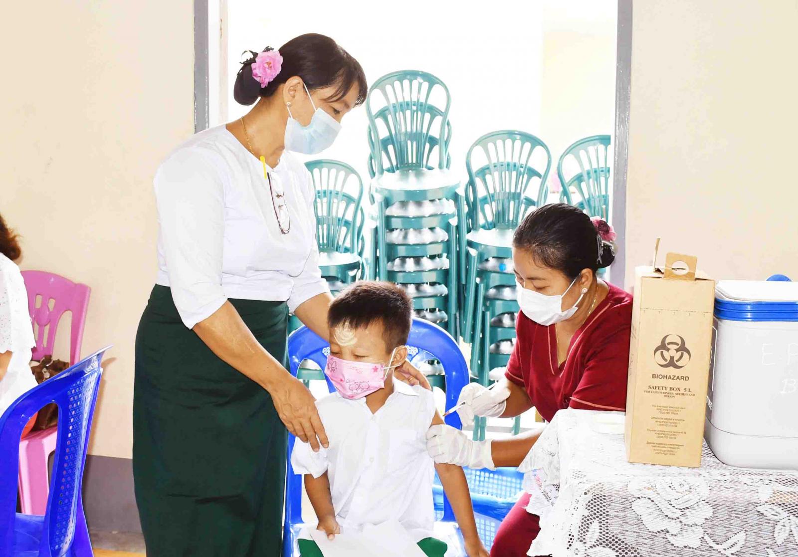 ထိုသို့ အသက်(၅)နှစ်မှ (၁၂)နှစ်အတွင်းရှိသည့် ကျောင်းသား၊ ကျောင်းသူများအား ကိုဗစ်-၁၉ ရောဂါ ကာကွယ်ဆေးထိုးနှံပေးလျက်ရှိရာတွင် ဆေးထိုးနှံမည့် ကျောင်းသား၊ ကျောင်းသူများကို ဆရာ၊ ဆရာမများမှ စာရင်းမှတ်တမ်းရေးသွင်းကောက်ယူခြင်း၊ သတ်မှတ်နေရာများသို့ လိုက်ပါပို့ဆောင် ပေးခြင်းများဆောင်ရွက်ပြီး ကျန်းမာရေးဌာနမှ ဝန်ထမ်းများက ကိုယ်အပူချိန်တိုင်းတာ ပေးခြင်းများ ဆောင်ရွက်ကာ ကိုဗစ်ကာကွယ်ဆေးများအား ထိုးနှံပေးသည်။