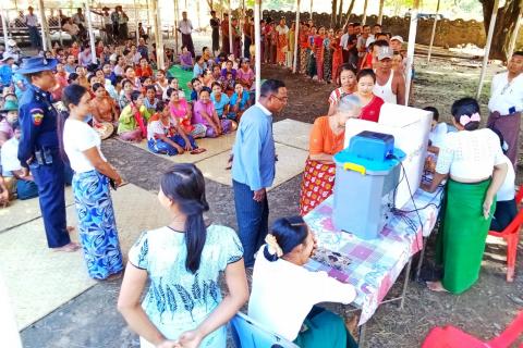 မလှိုင်မြို့နယ်၌ တက္ကသိုလ်တက်ရောက်ကြမည့် ကျောင်းသား၊ ကျောင်းသူများအတွက် ကြိုတင်ဆန္ဒမဲပေးနိုင်ရေး ဆောင်ရွက်နေမှုများကို ကြည့်ရှုအားပေး
