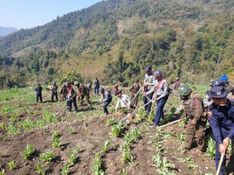 ဝိုင်းမော်မြို့နယ်၊ ကန်ပိုက်တီမြို့တွင် (၈) ရက်အတွင်း ဘိန်းစိုက်ခင်းဧက (၈၀.၅) ဖျက်ဆီး