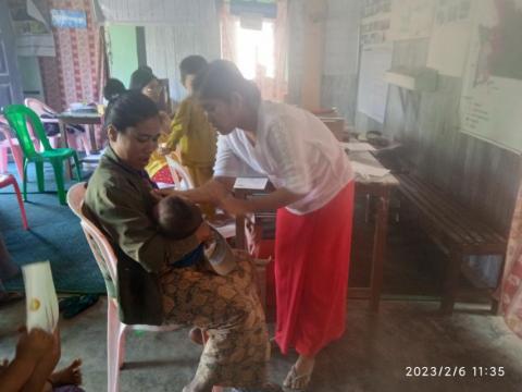 မအီမြို့၌ အသက် ၂ နှစ်အောက်ကလေးများနှင့် ကိုယ်ဝန်ဆောင်မိခင်များအား ပုံမှန်ကာကွယ်ဆေး ထိုးနှံတိုက်ကျွေးခြင်းများဆောင်ရွက်