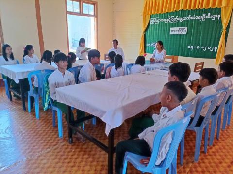 ဒက္ခိဏခရိုင်ရုံး လူထုအခြေပြုဗဟိုဌာနခန်းမတွင် စာပေဝါသနာရှင်များက စာဖတ်ဝိုင်းပြုလုပ်
