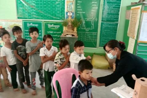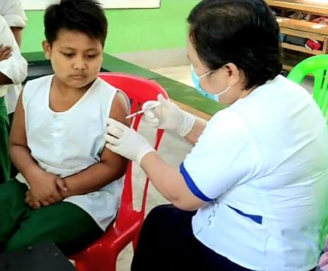 ကျောက်ဆည်မြို့နယ်တွင် အသက် (၅) နှစ်မှ (၁၂) နှစ် အတွင်းရှိ ကျောင်းသား/ကျောင်းသူများအား ကိုဗစ်-၁၉ ရောဂါကာ ထပ်ဆောင်းကွယ်ဆေးများ ထိုးနှံပေးလျက်ရှိရာ (၁၃၃၂)ဦးထိုးနှံပြီးဖြစ်