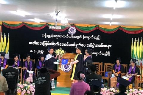 အစိုးရနည်းပညာအထက်တန်းကျောင်း(ကျောက်ဆည်)တွင် (GTHS) အောင်လက်မှတ်အပ်နှင်းပွဲ အခမ်းအနားကျင်းပ