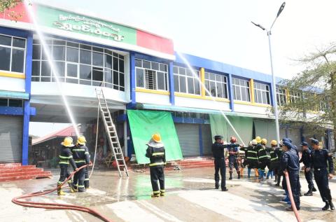 စစ်ကိုင်းမြို့၊ ရွှေမင်းဝံစျေးအတွင်း မီးဘေးအန္တရာယ်ကြိုတင်ကာကွယ်ရေး လက်တွေ့သရုပ်ပြသ