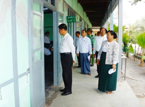 ချမ်းမြသာစည်မြို့နယ်၌ Grade-5၊ Grade-9 ကျောင်းသား/သူများ စာမေးပွဲဖြေဆိုနေမှုအား မန္တလေးတိုင်းဒေသကြီးအစိုးရအဖွဲ့ ဝန်ကြီးချုပ်နှင့် ဝန်ကြီးများ လှည့်လည်ကြည့်ရှု