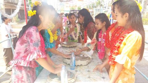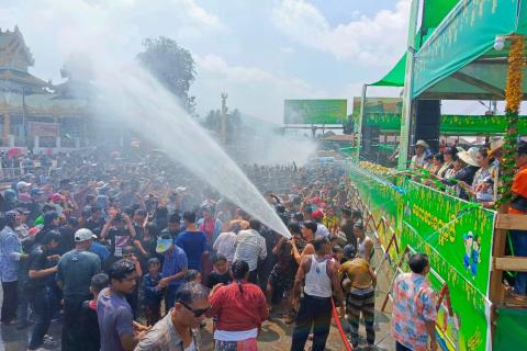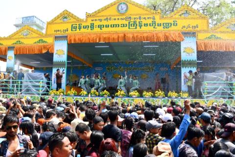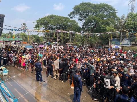 မြန်မာတို့၏ တစ်ဆယ့်နှစ်လရာသီပွဲတော်များအနက် အထွတ်အမြတ်ထားရာဖြစ်သော ၁၃၈၇ ခုနှစ်၊ မြန်မာ့ရိုးရာ မဟာသင်္ကြန်အတက်နေ့တွင် ပဲခူးတိုင်းဒေသကြီး၊ တောင်ငူခရိုင် တောင်ငူမြို့ ဗဟိုမဏ္ဍပ်နှင့် လမ်းလျှောက်သင်္ကြန်ပွဲတော်၊ သနပ်ခါးမဏ္ဍပ်၊ လက်ဖက်မဏ္ဍပ်တို့၌ အနယ်နယ်အရပ်ရပ်မှ အေးချမ်းပျော်ရွှင်စွာ ရေလာရောက်ကစားကြသူများဖြင့် စည်ကားများပြားလျက်ရှိသည်။