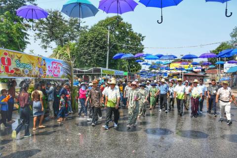 ဂေါ်ရန်ဂျီကျွန်းကမ်းခြေ၌ မဟာသင်္ကြန်အကြတ်နေ့တွင် ခရီးသွားဧည့်သည်များဖြင့် စည်ကားများပြား