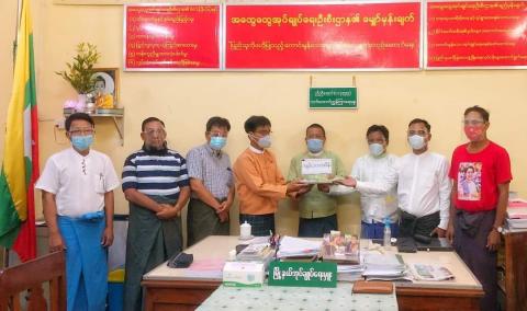 ရွှေစင်တိပိဋကဓရ မြင်းခြံဆရာတော် ဘဒ္ဒန္တဂန္ဓမာလာလင်္ကာရနှင့် အလှူရှင်များက မြင်းခြံမြို့နယ် ကိုဗစ်-၁၉ ကာကွယ်ထိန်းချုပ်ကုသရေးလုပ်ငန်းကော်မတီသို့ ကျပ်သိန်း (၁၀၀) လှူဒါန်း
