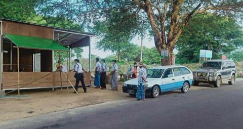 ညောင်ဦးမြို့ အဝင်အထွက်စစ်ဆေးရေးဂိတ်များတွင် အလိုအလျောက်အပူချိန်တိုင်းစက်ဖြင့် စစ်ဆေးဆောင်ရွက်နေ