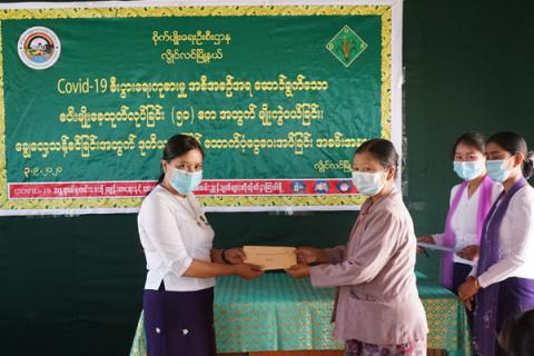 မန်ကန်မြို့၌ COVID-19 ရောဂါ ထိန်းချုပ် ကာကွယ်ရေးအတွက် မက်(စ်)ပေးဝေခြင်းနှင့် အပူချိန် တိုင်းတာ ခြင်း လုပ်ငန်းများဆောင်ရွက်