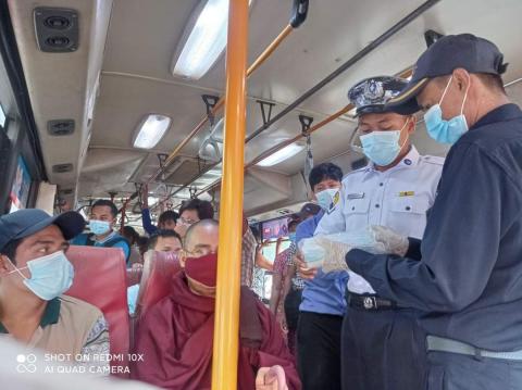 စမ်းချောင်းမြို့နယ်အတွင်းရှိ ဈေးများနှင့်လူစည်ကားသော နေရာများတွင်အသိပညာ ပေးခြင်းနှင့် နှာခေါင်းစည်း(Mask)များအခမဲ့ ဖြန့်ဝေ
