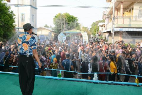ငပုတောမြို့ သင်္ကြန်အကြတ်နေ့နံနက်ပိုင်းတွင် ရေကစားသူများဖြင့် စည်ကား
