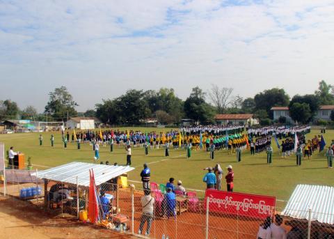 ရှမ်းပြည်နယ်တောင်ပိုင်း၊ နမ့်စန်ခရိုင်၊ နမ့်စန်မြို့နယ်တွင် မြို့နယ်ပညာရေးမှူးဖလား အခြေခံပညာကျောင်းပေါင်းစုံ အသက်(၁၆)နှစ်အောက် အမျိုးသားဘောလုံးပြိုင်ပွဲ ဖွင့်ပွဲအခမ်းအနားကို ယနေ့နံနက် ၉နာရီက မြို့နယ်ကျောက်တိုင်အားကစားကွင်းအတွင်းတွင် စည်ကားသိုက်မြိုက်စွာကျင်းပခဲ့ရာ၊ နမ့်စန်တပ်နယ်မှူး ဗိုလ်မှူးချုပ်မျိုးမင်းထွန်း၊ ခရိုင်စီမံအုပ်ချုပ်ရေးအဖွဲ့ ဥက္ကဋ္ဌဦးတင်ကျော်ဝင်း၊ မြို့နယ်စီမံအုပ်ချုပ်ရေးအဖွဲ့ ဥက္ကဌဦးကျော်မိုးနှင့် မြို့နယ်အဆင့်ဌာနဆိုင်ရာအကြီးအကဲများ၊ ဖိတ်ကြားထားသော ဧည့်သည်တော်များ၊ အားကစားနှင့်ကာယပညာဦးစီးဌာနမှ တာဝန်ရှိသူများနှင့် ပြိုင်ပွဲဝင်အားကစားသမားများ တက်ရောက်ခဲ့ကြောင်း သိရသည်။