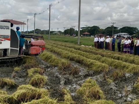 သုံးခွမြို့နယ်တွင် မိုးစပါးစံကွက်ရိတ်သိမ်းပွဲကျင်းပ